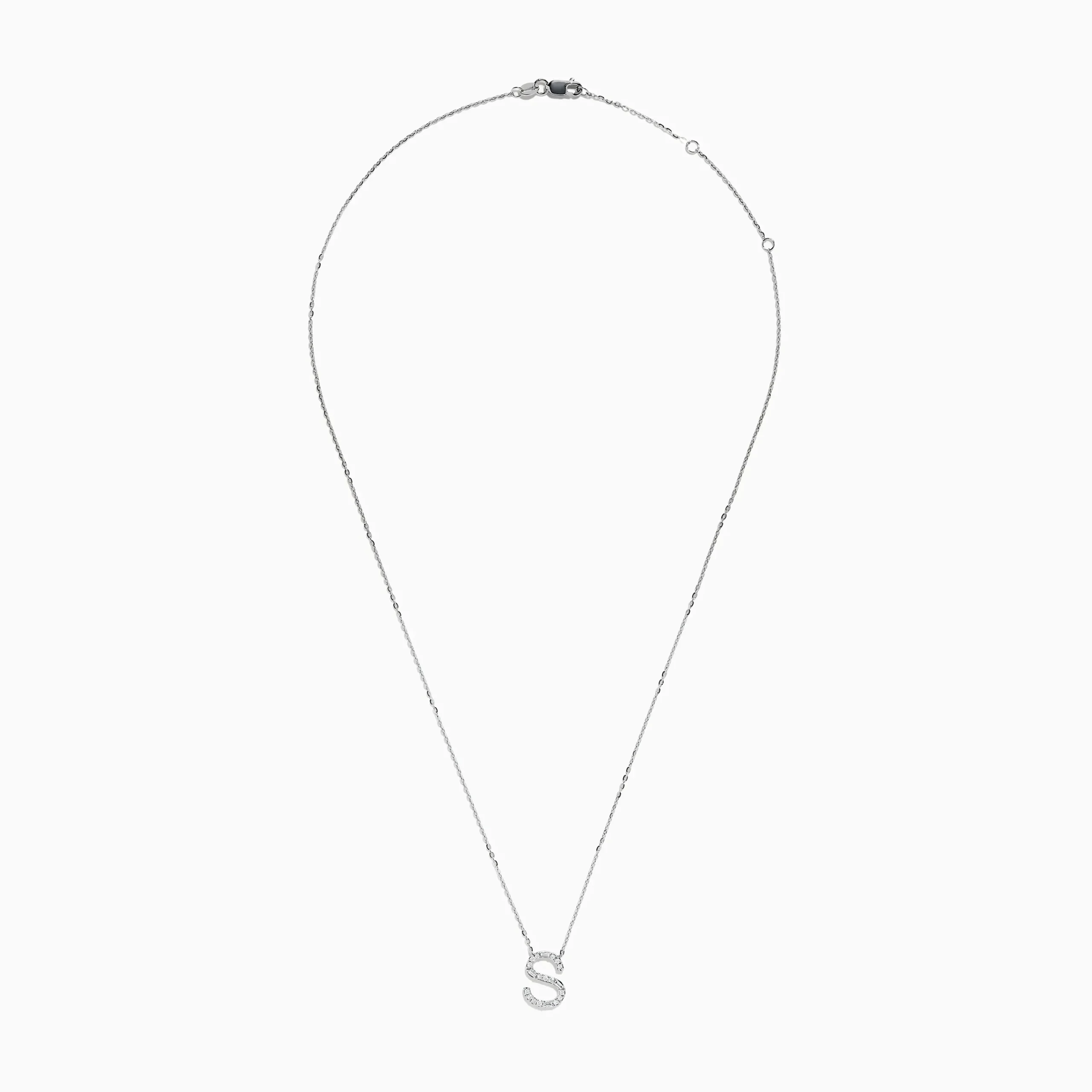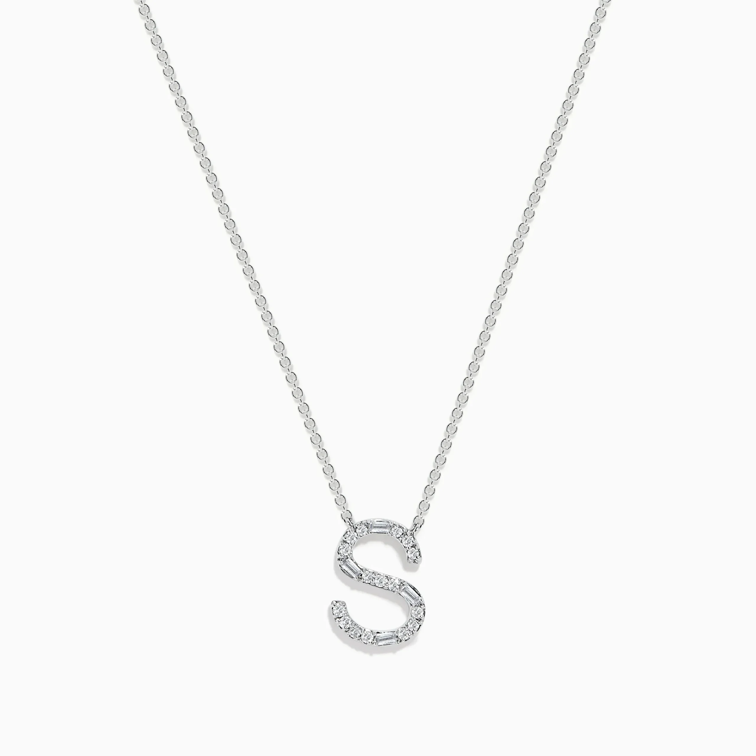 Metal:14K Gold Metal Color:WhiteStone: Multi Shape Diamond 0.18Effy 14 Karat White Gold Initial “S” Diamond Necklace