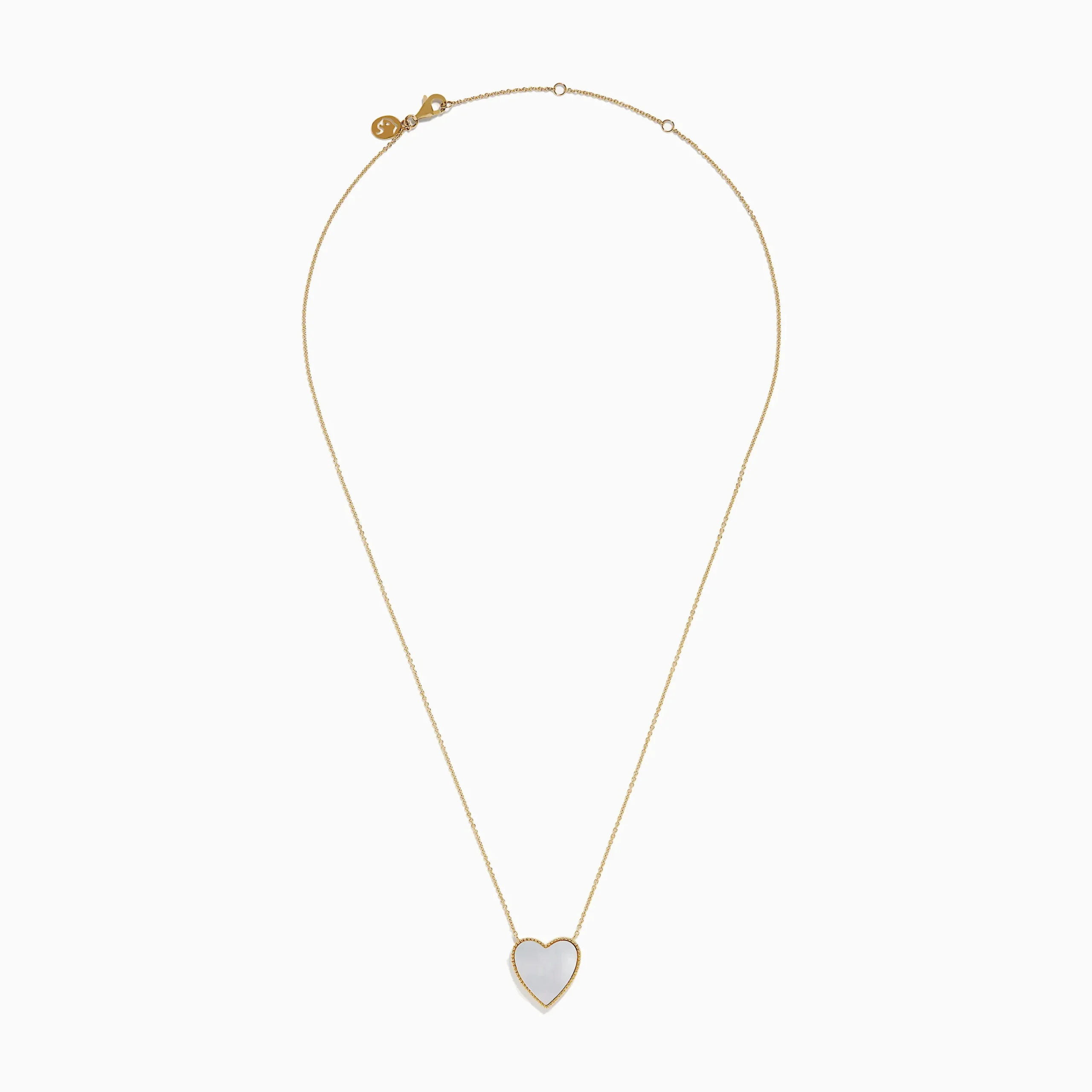Metal:14K Gold Metal Color:YellowStone: Round Diamond 0.1 Stone 2: Heart Mother of Pearl14K Gold Mother of Pearl and Dia…
