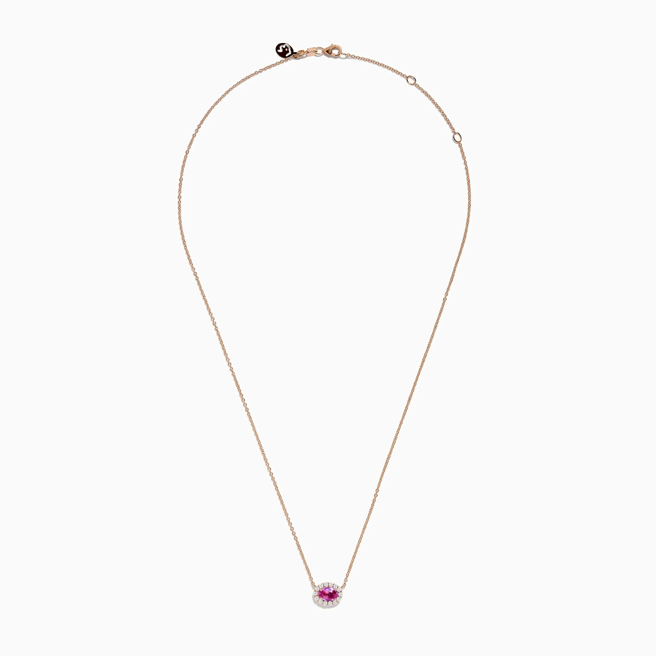 14K Rose Gold Pink Sapphire and Diamond Necklace