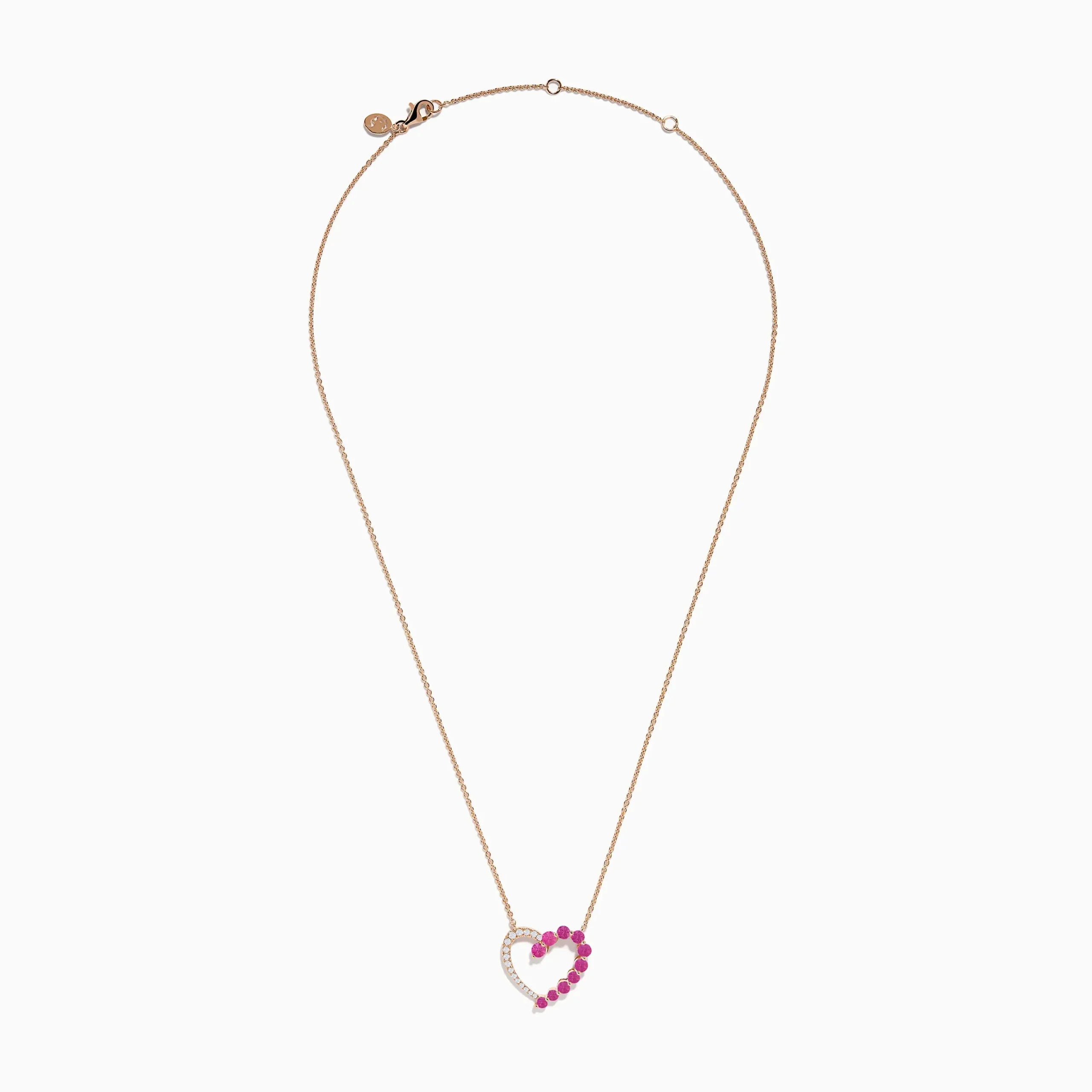 14K Rose Gold Pink Sapphire and Diamond Open Heart Necklace