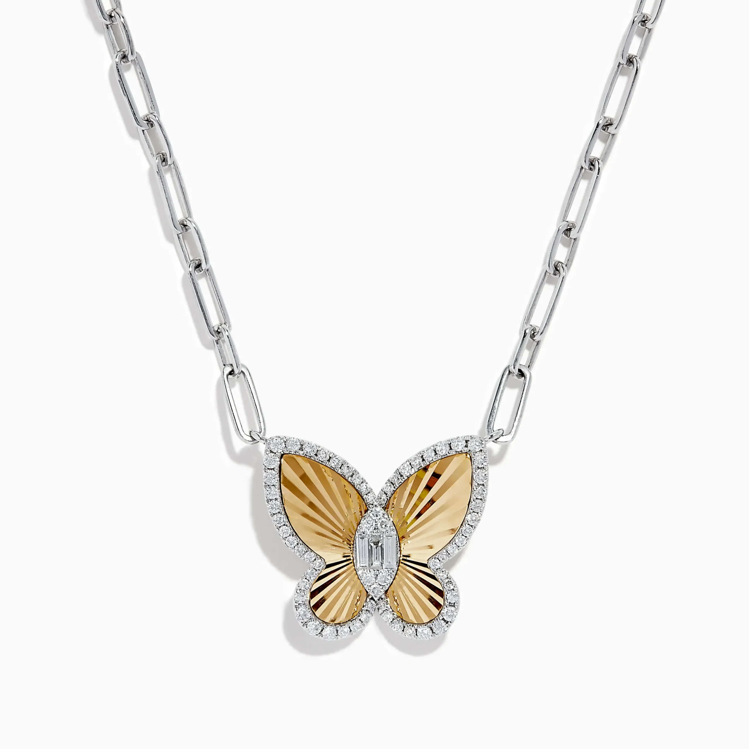 Effy 14K Two-Tone Gold Diamond Butterfly Necklace