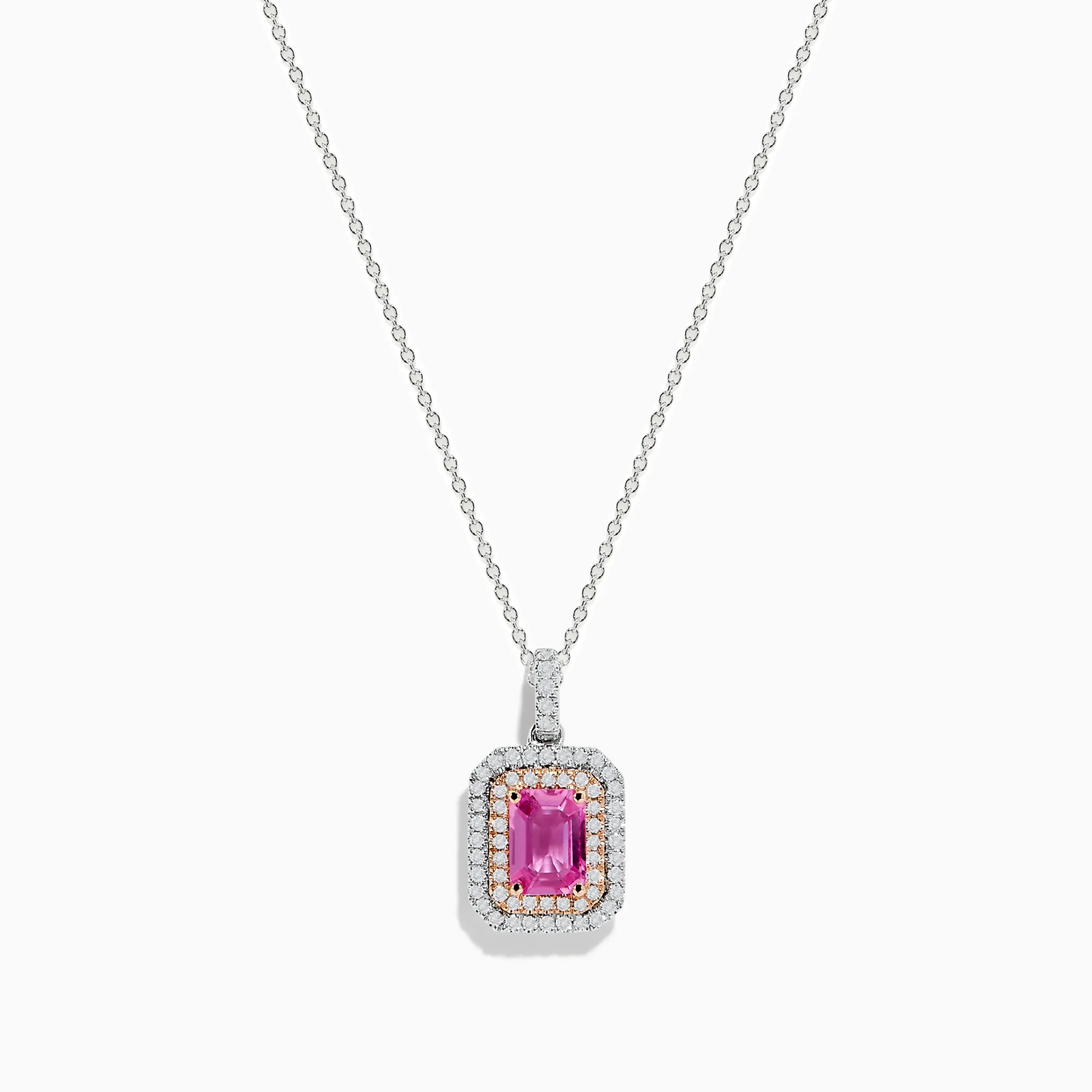 Effy 14K Two Tone Gold Pink Sapphire and Diamond Pendant