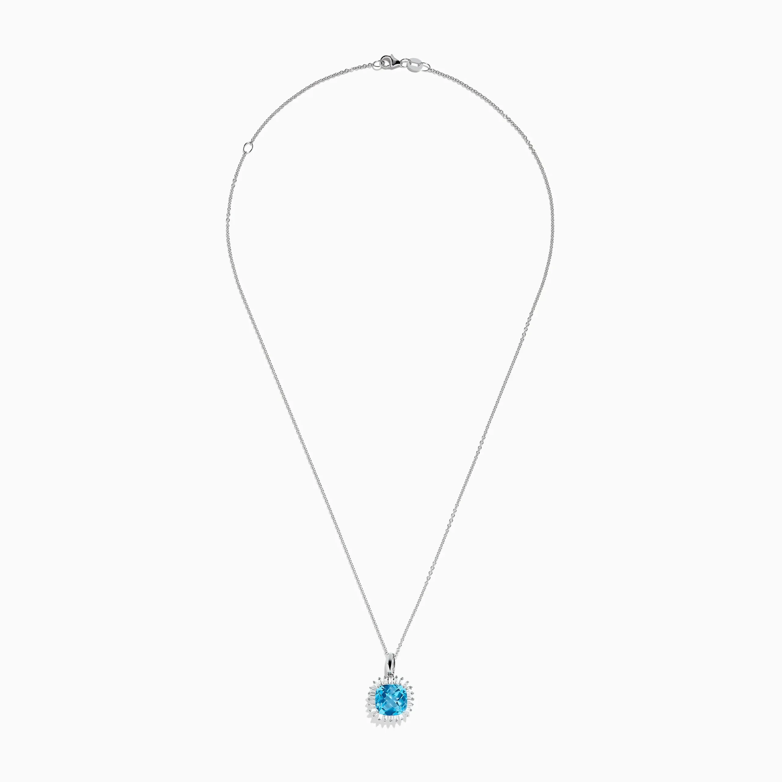 Metal:14K Gold Metal Color:WhiteStone: Baguette Diamond 0.33 Stone 2: Cushion Blue Topaz 5.414K White Gold Blue Topaz an…