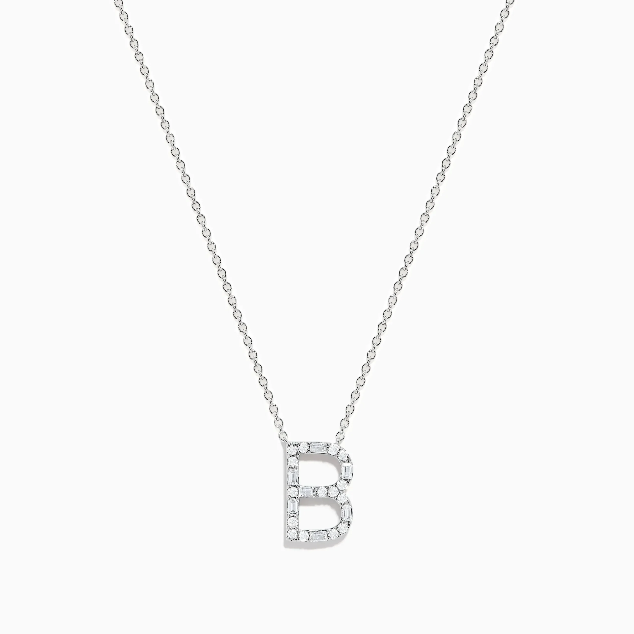 Metal:14K Gold Metal Color:WhiteStone: Multi Shape Diamond 0.21Effy 14K White Gold Diamond Initial “B” Pendant