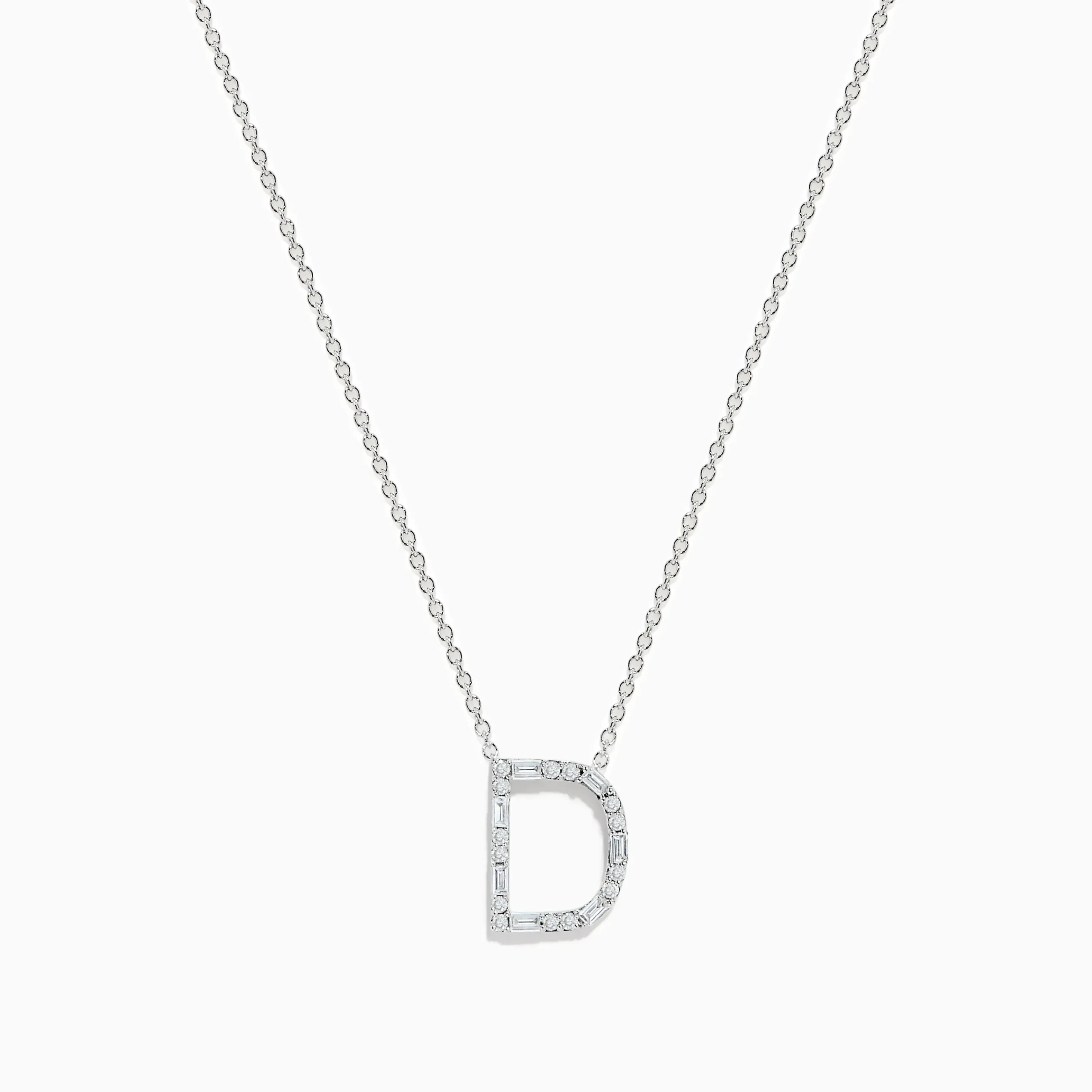Metal:14K Gold Metal Color:WhiteStone: Multi Shape Diamond 0.19Effy 14K White Gold Diamond Initial “D” Pendant