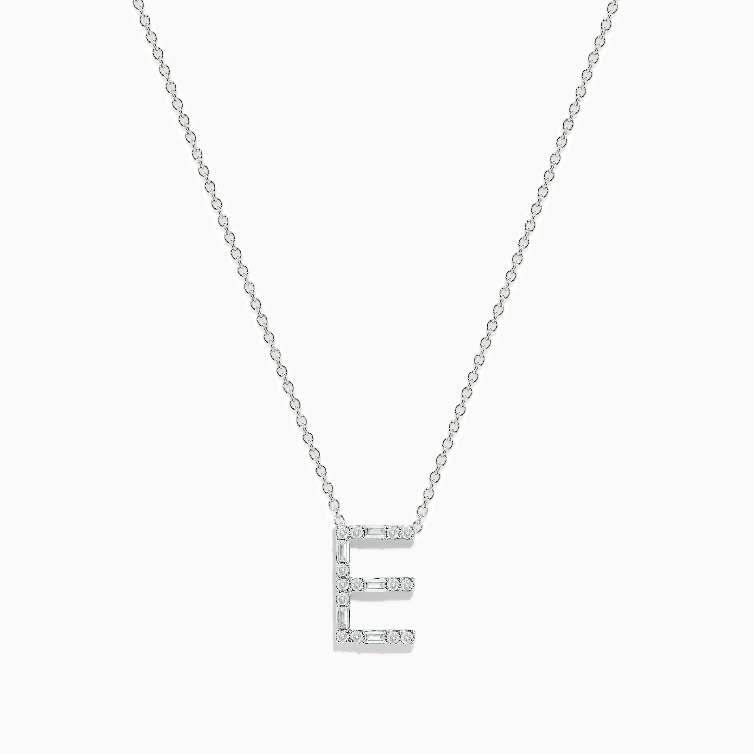 Metal:14K Gold Metal Color:WhiteStone: Multi Shape Diamond 0.17Effy 14K White Gold Diamond Initial “E” Pendant