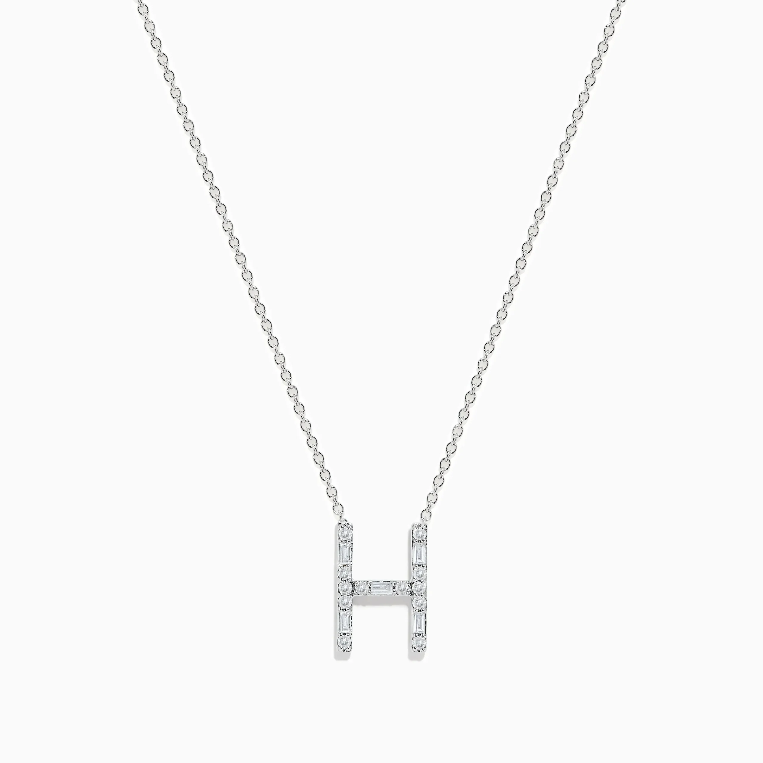 Metal:14K Gold Metal Color:WhiteStone: Multi Shape Diamond 0.21Effy 14K White Gold Diamond Initial “H” Pendant
