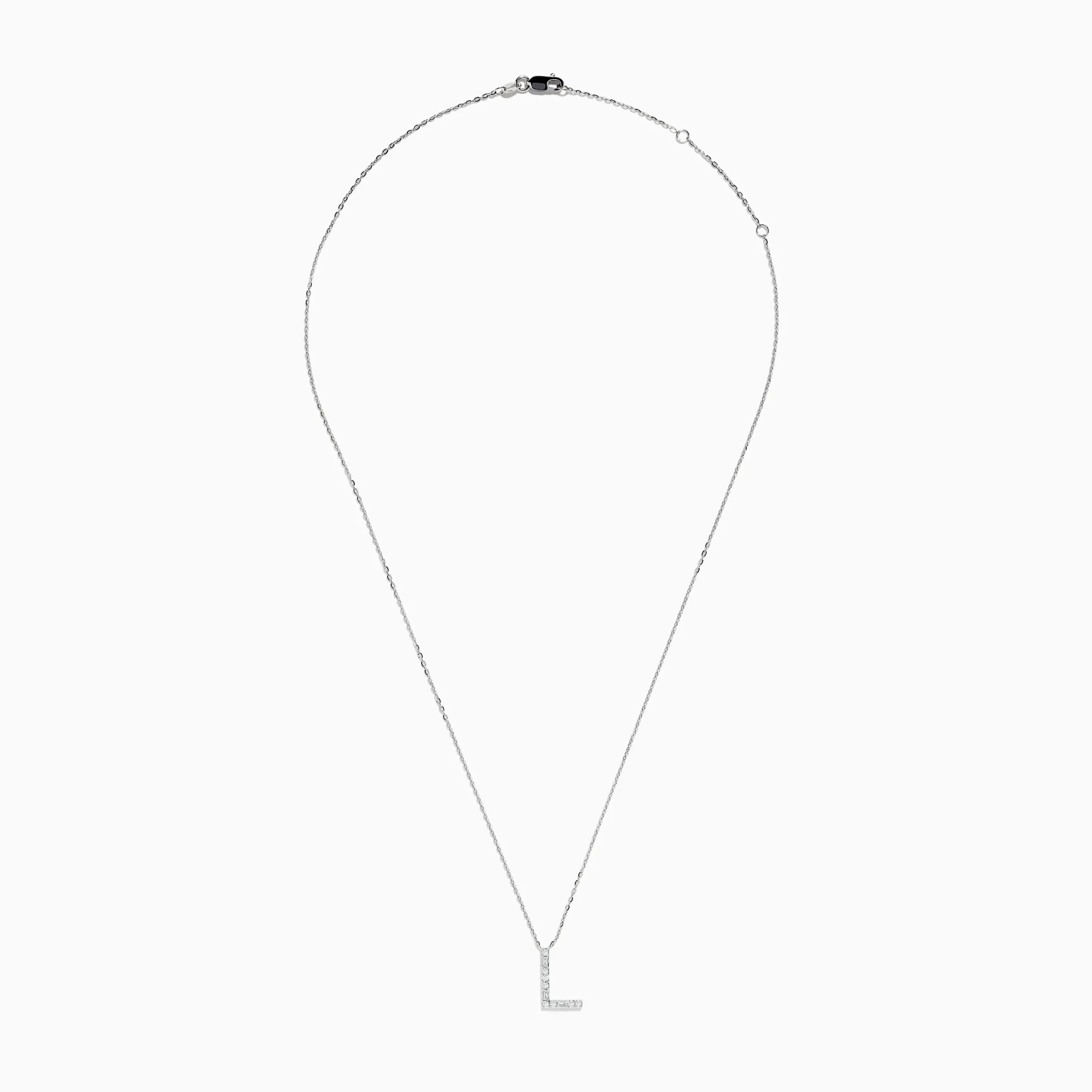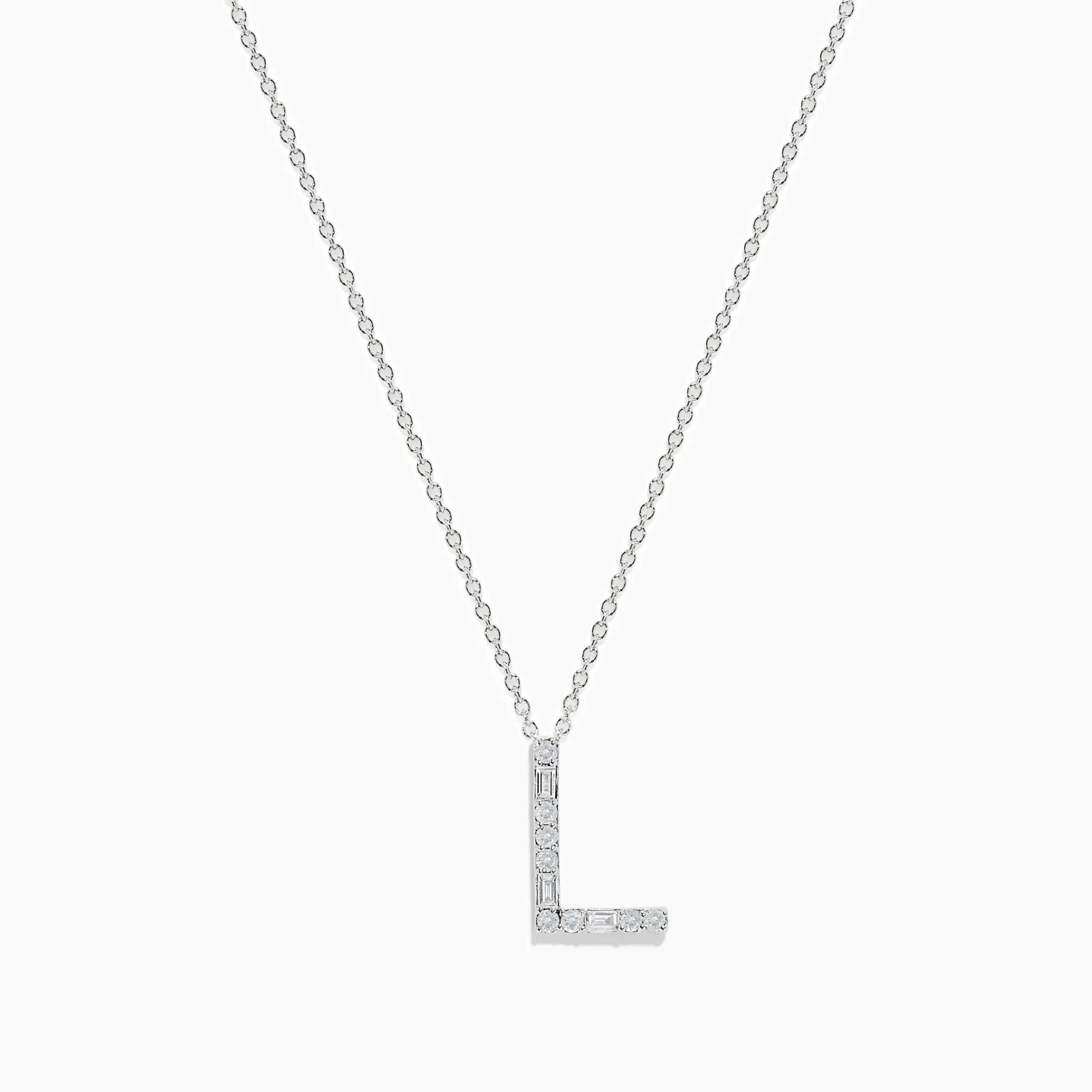 Metal:14K Gold Metal Color:WhiteStone: Multi Shape Diamond 0.18Effy 14K White Gold Diamond Initial “L” Pendant