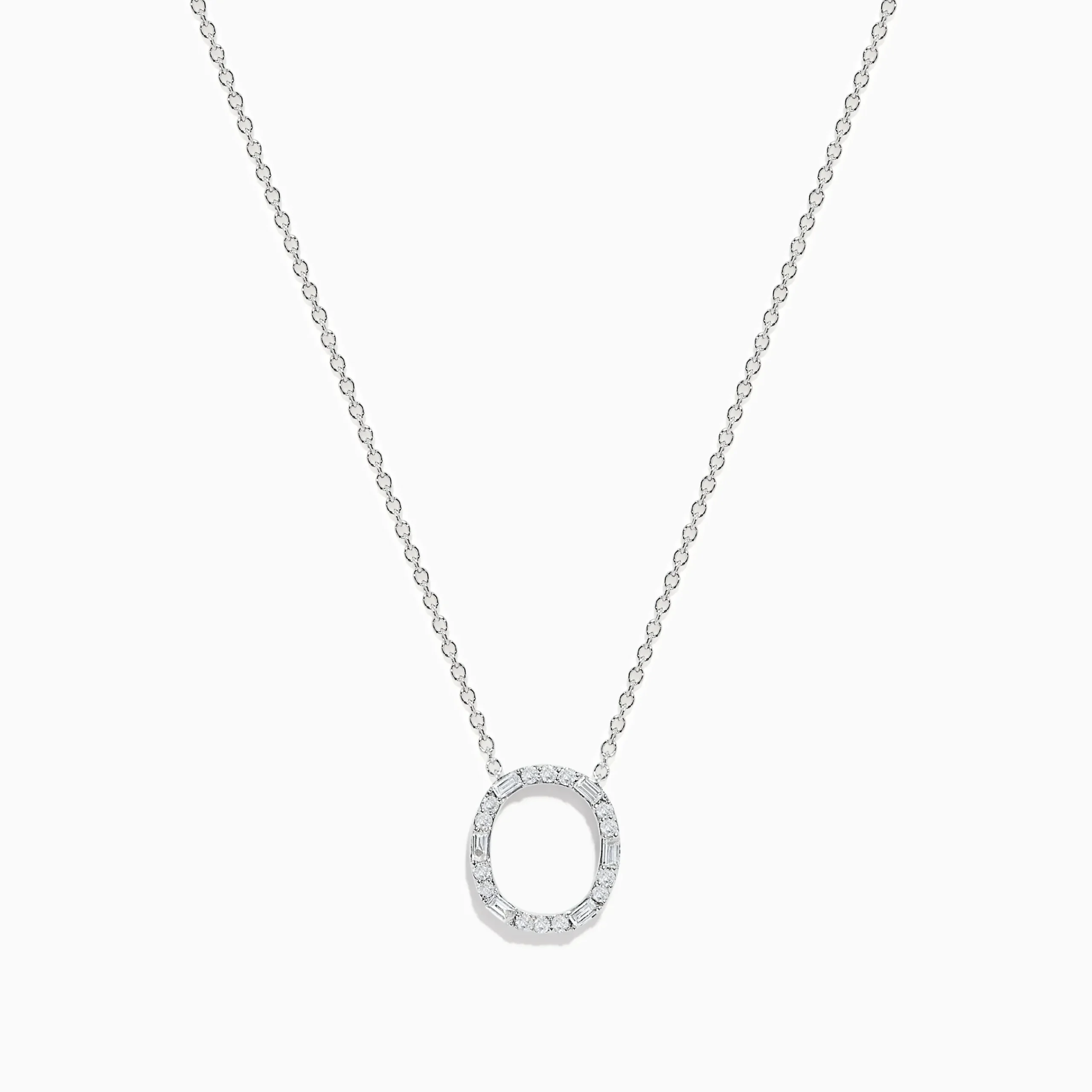 Metal:14K Gold Metal Color:WhiteStone: Multi Shape Diamond 0.17Effy 14K White Gold Diamond Initial “O” Pendant
