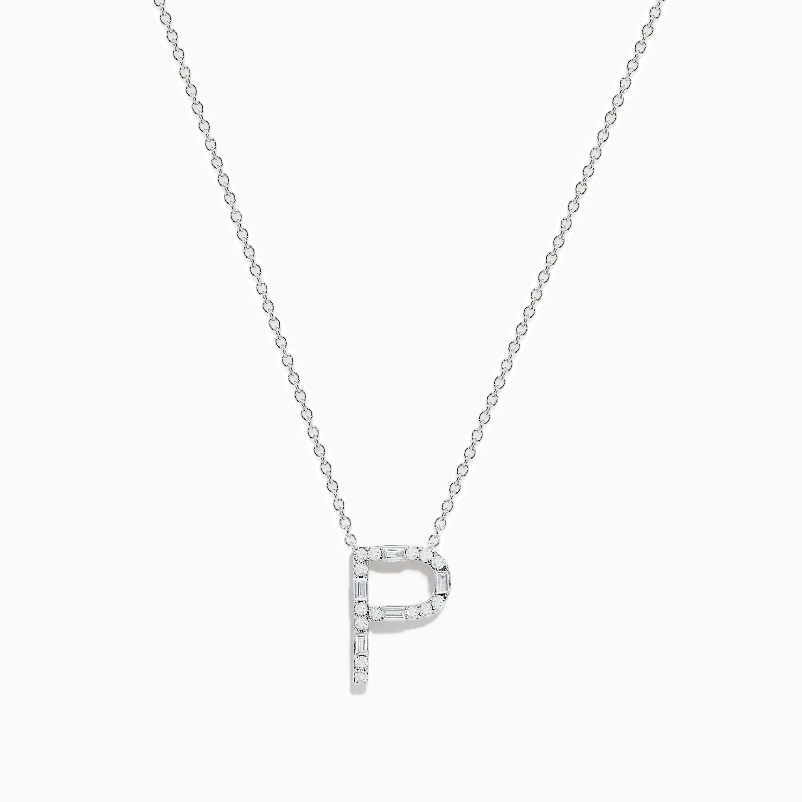 Metal:14K Gold Metal Color:WhiteStone: Multi Shape Diamond 0.17Effy 14K White Gold Diamond Initial “P” Pendant