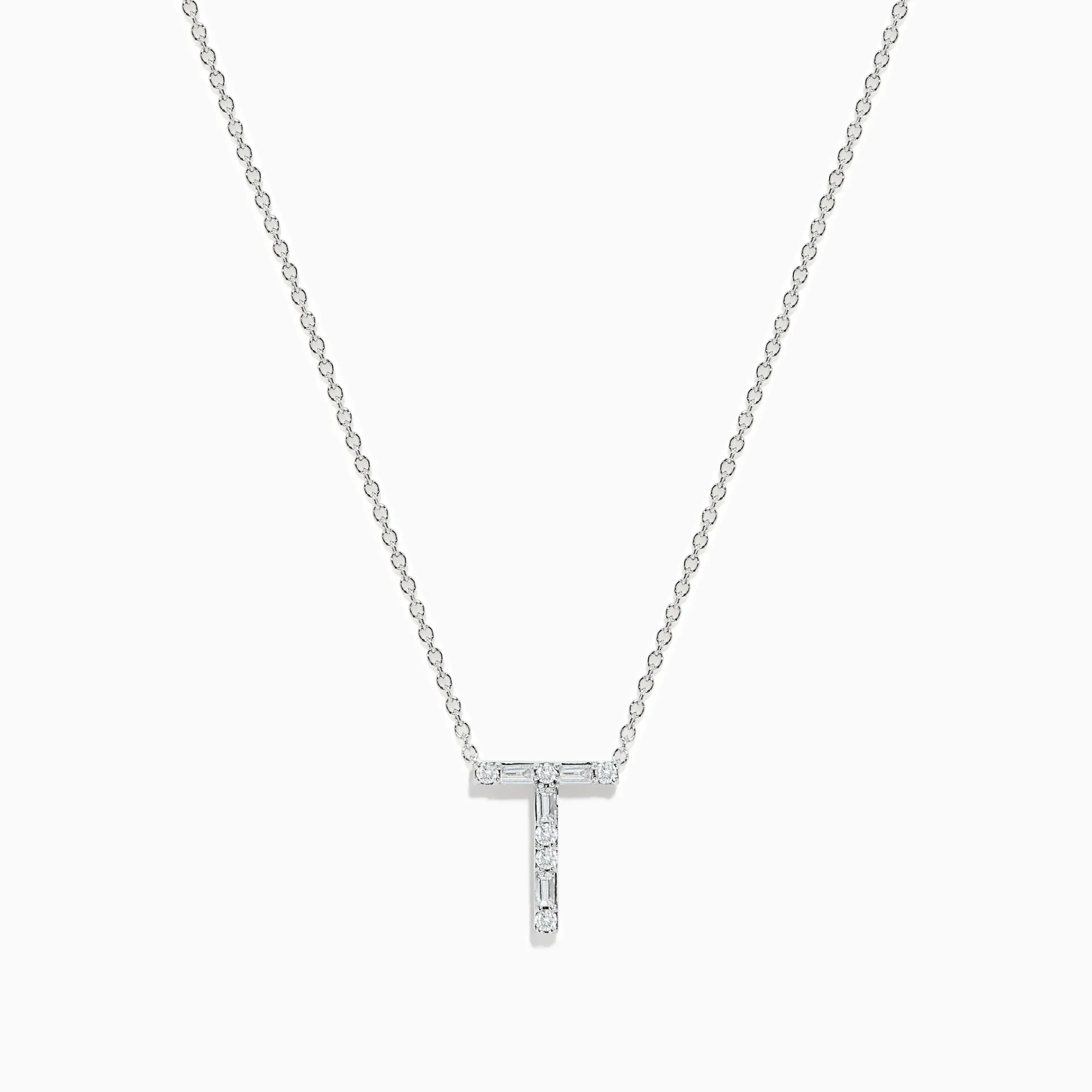 Metal:14K Gold Metal Color:WhiteStone: Multi Shape Diamond 0.19Effy 14K White Gold Diamond Initial “T” Pendant