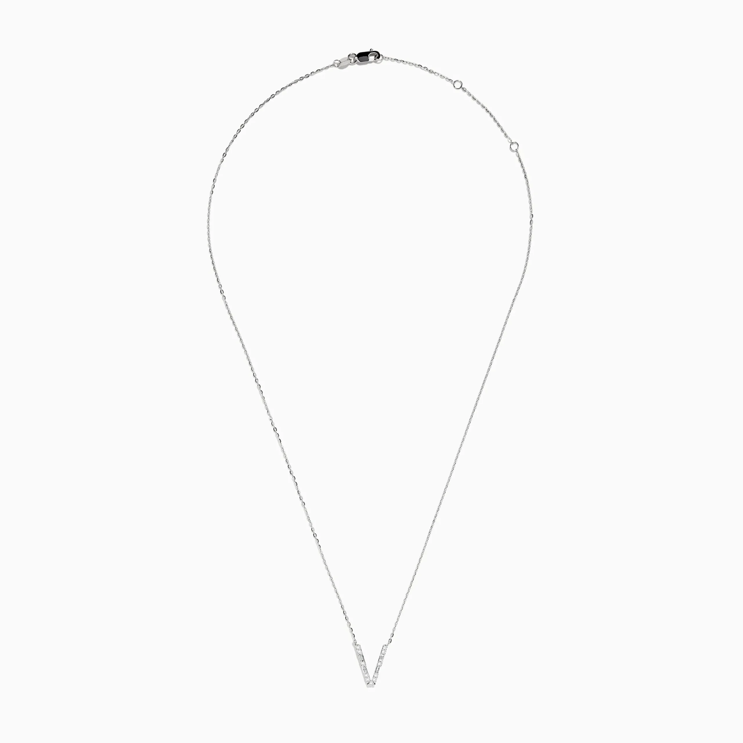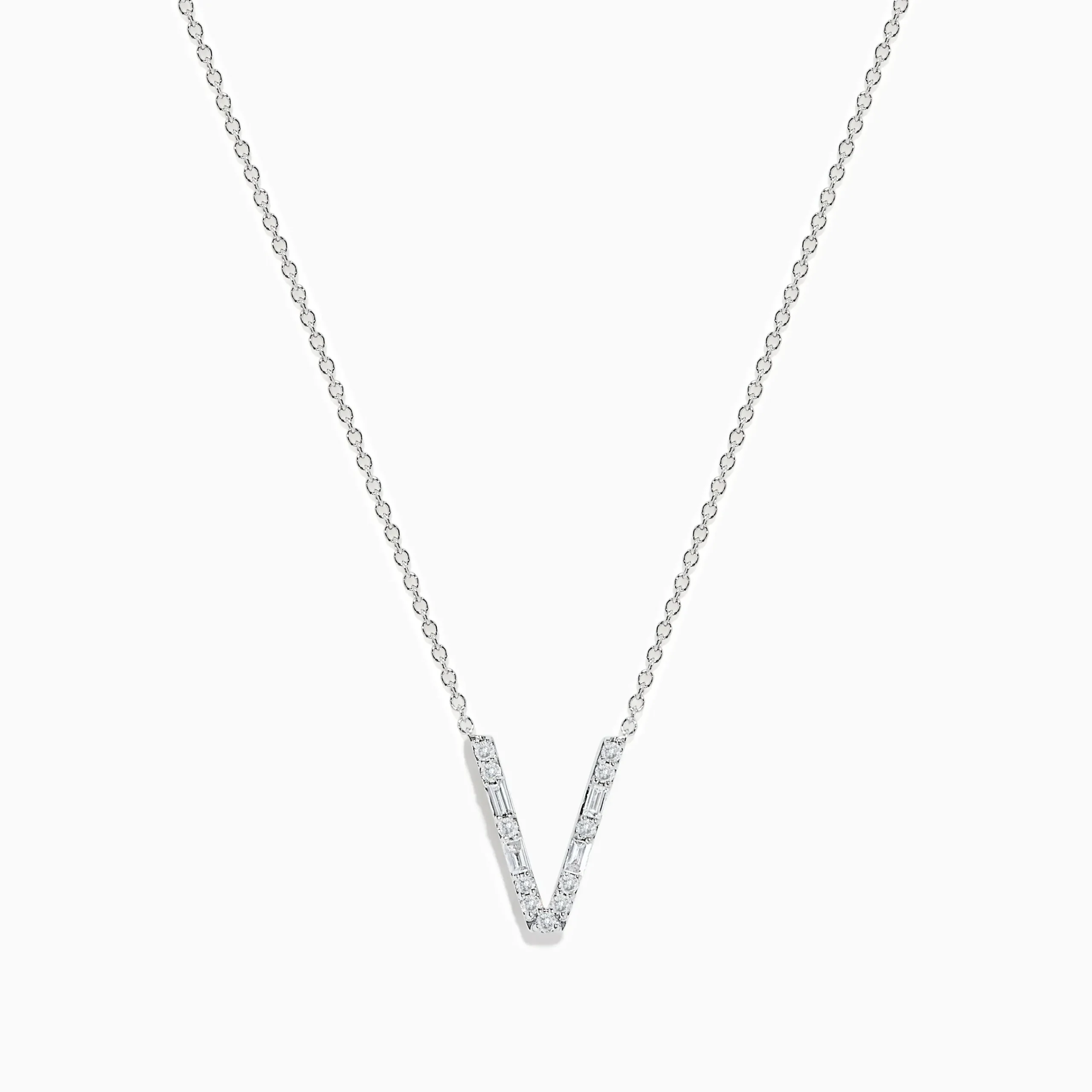 Metal:14K Gold Metal Color:WhiteStone: Multi Shape Diamond 0.2Effy 14K White Gold Diamond Initial “V” Pendant
