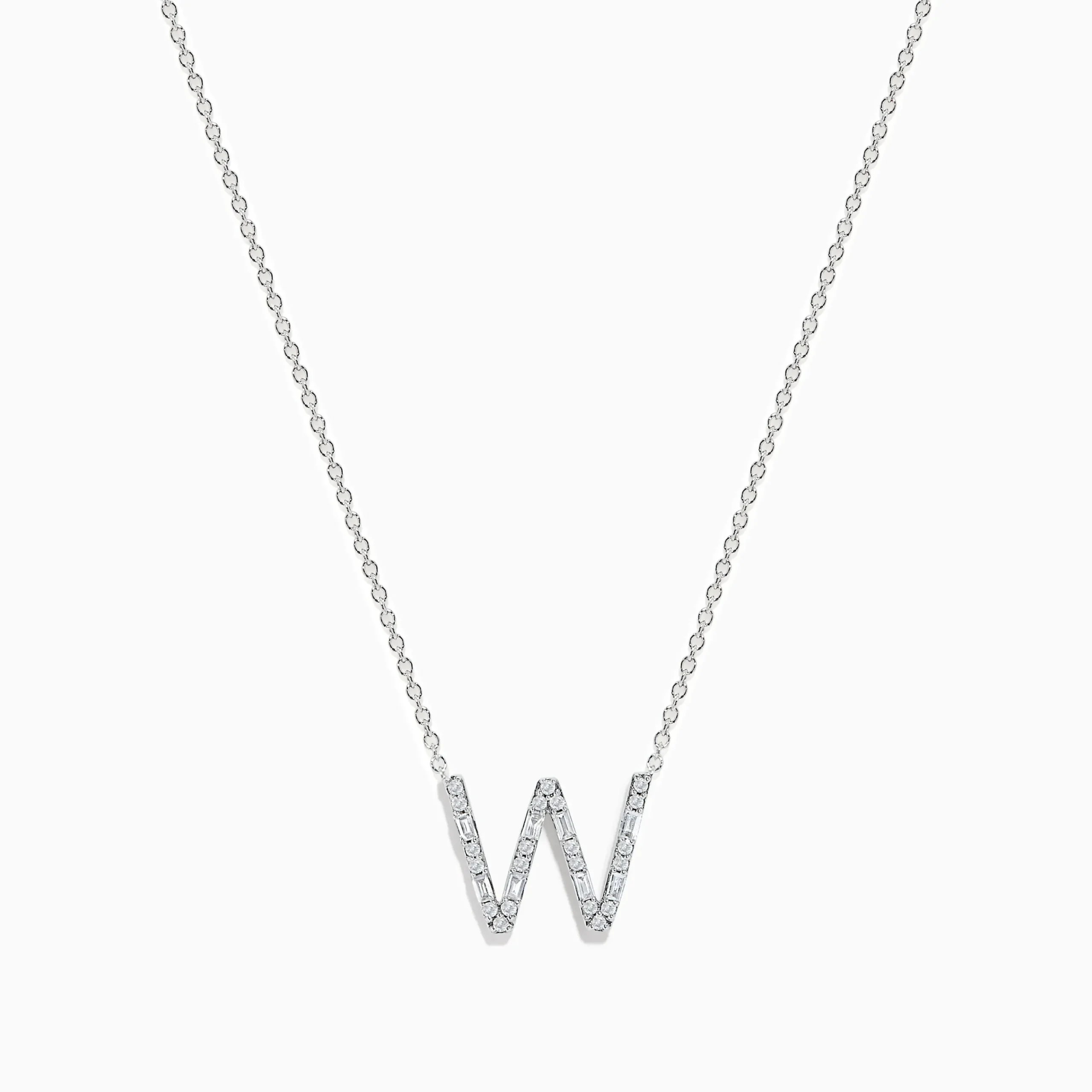 Metal:14K Gold Metal Color:WhiteStone: Multi Shape Diamond 0.18Effy 14K White Gold Diamond Initial “W” Pendant