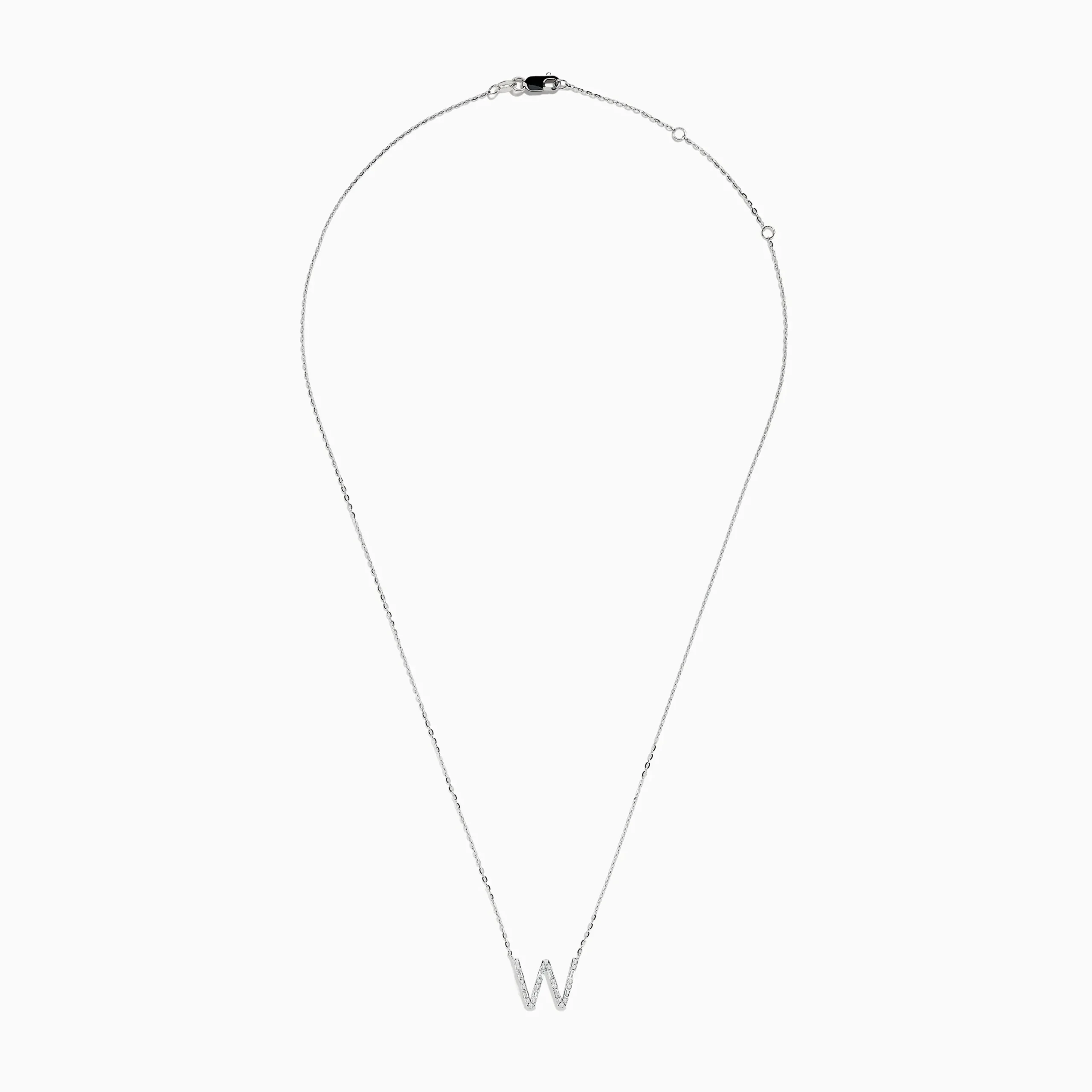 Effy 14K White Gold Diamond Initial “W” Pendant