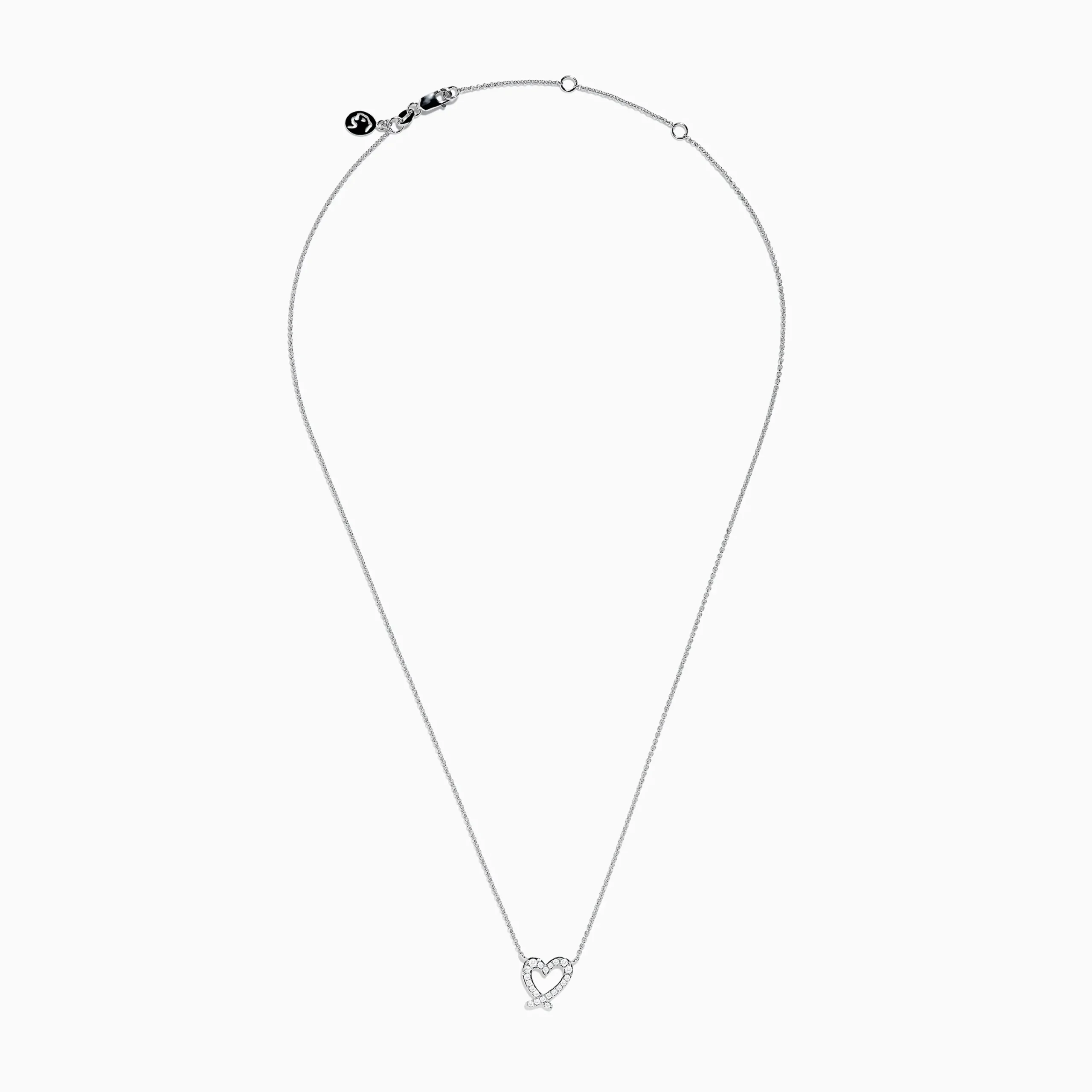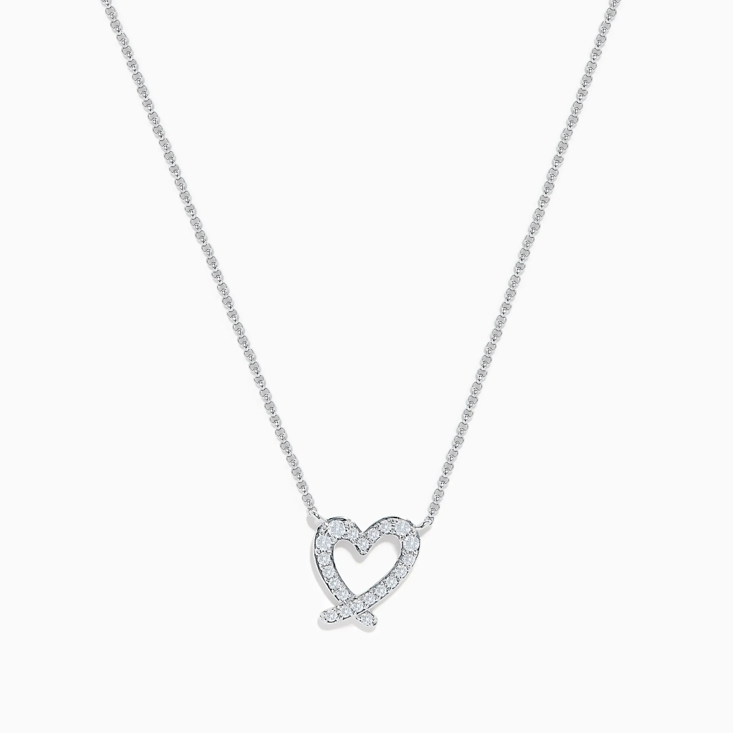Metal:14K Gold Metal Color:WhiteStone: Round Diamond 0.1914K White Gold Diamond Open Heart Necklace