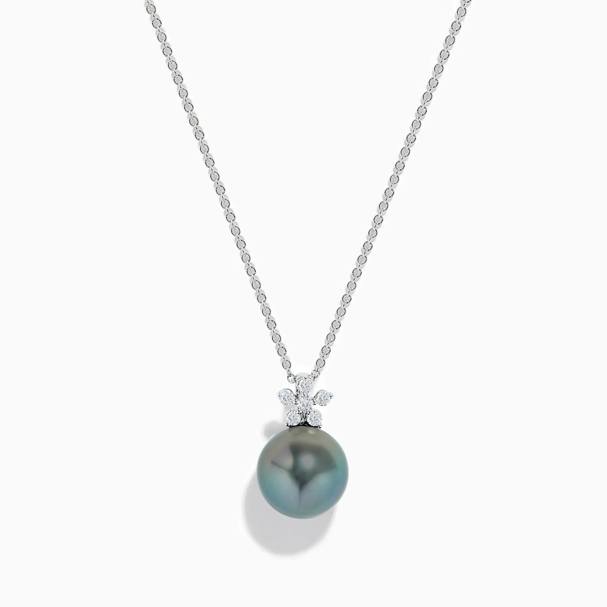 14K White Gold Tahitian Pearl and Diamond Pendant