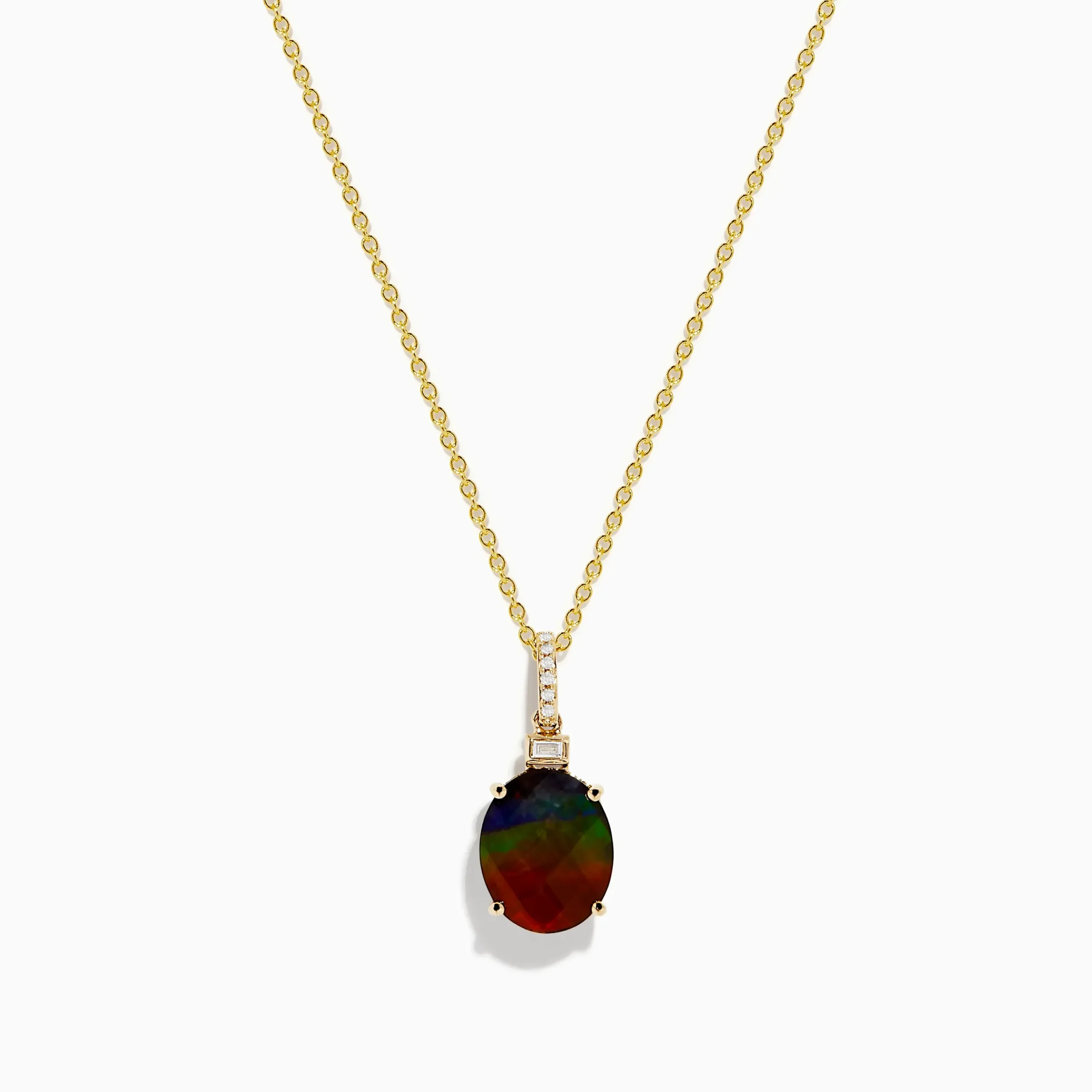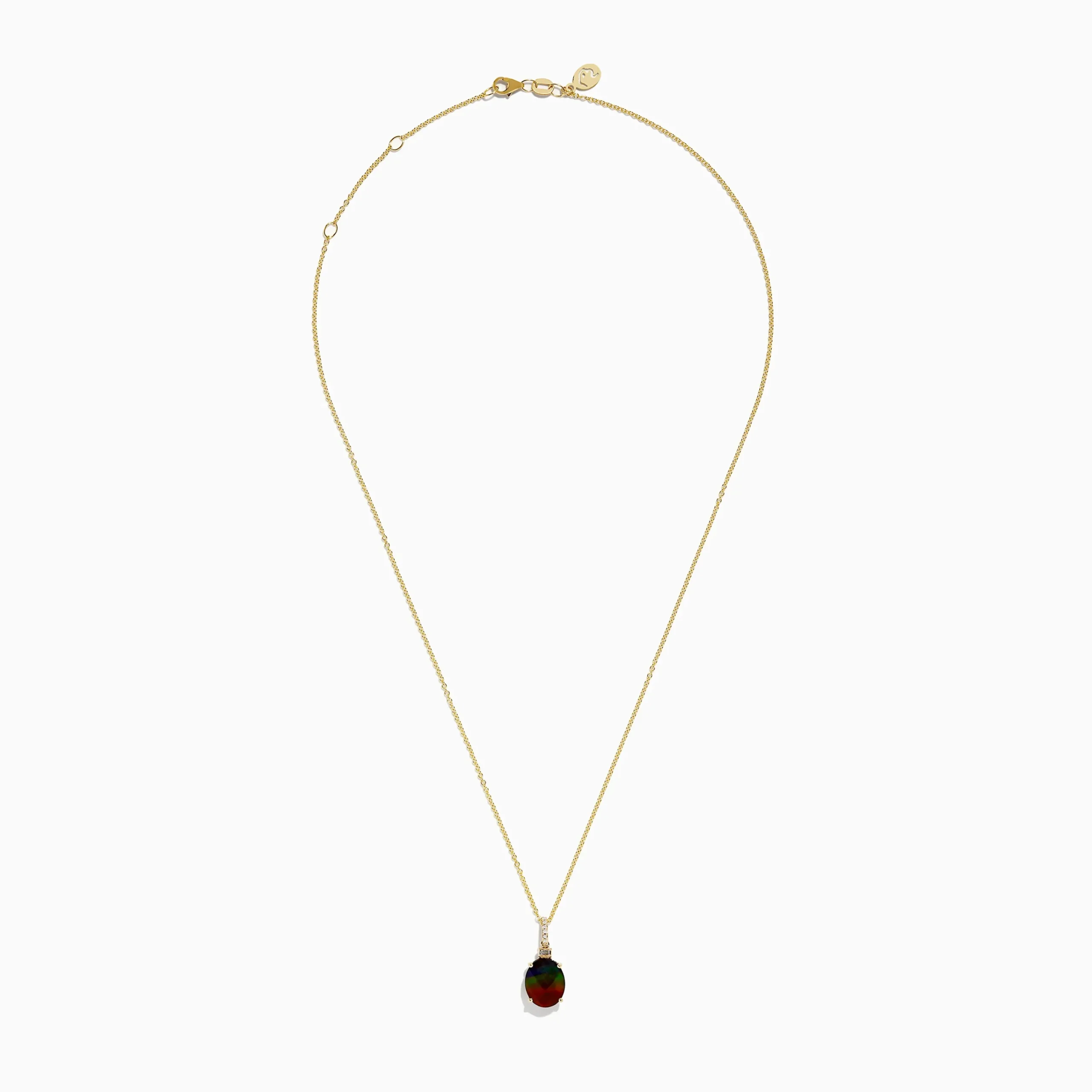 Metal:14K Gold Metal Color:YellowStone: Round Diamond 0.03 Stone 2: Oval Ammolite 2.514K Yellow Gold Ammolite and Diamon…
