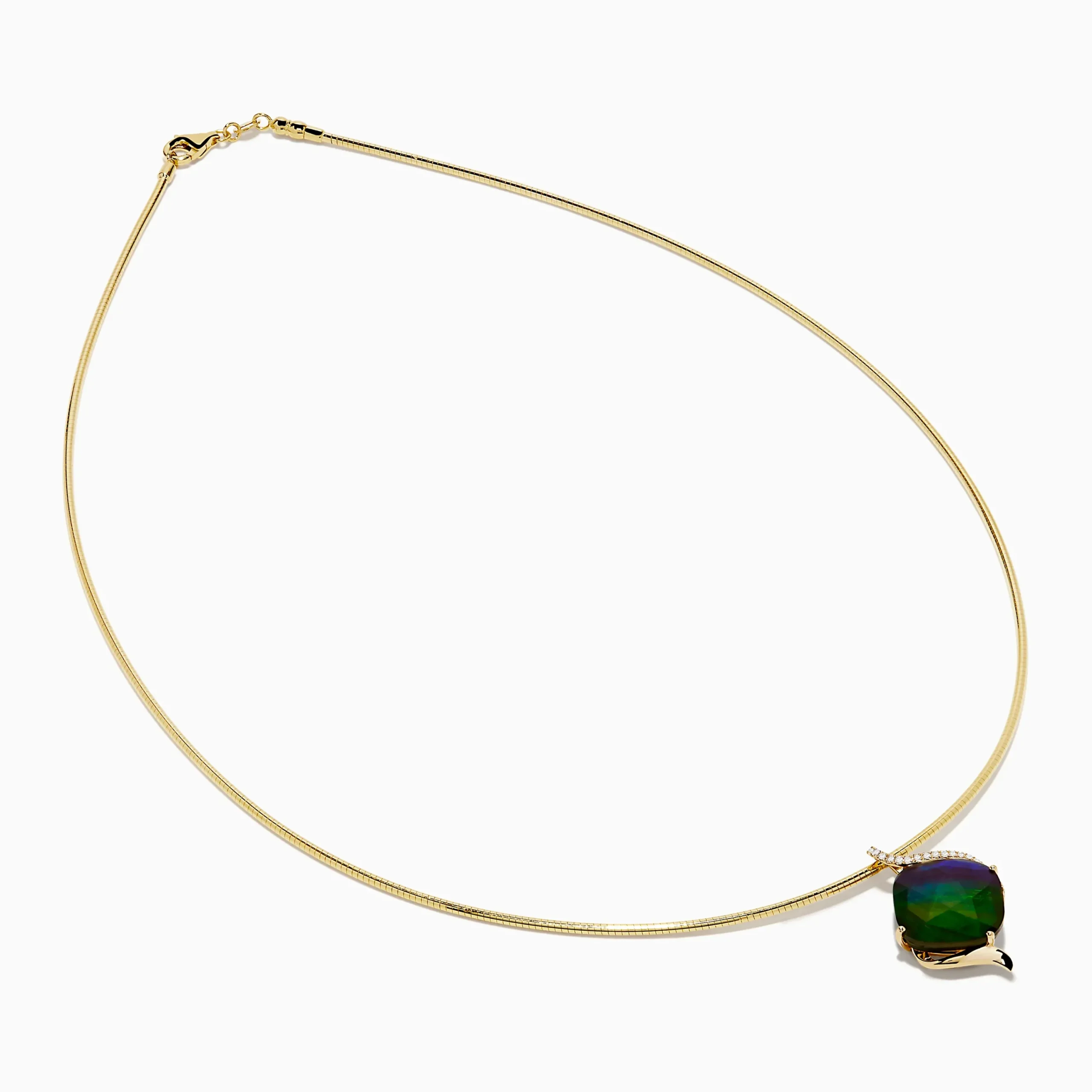 14K Yellow Gold Ammolite and Diamond Snake Chain Pendant
