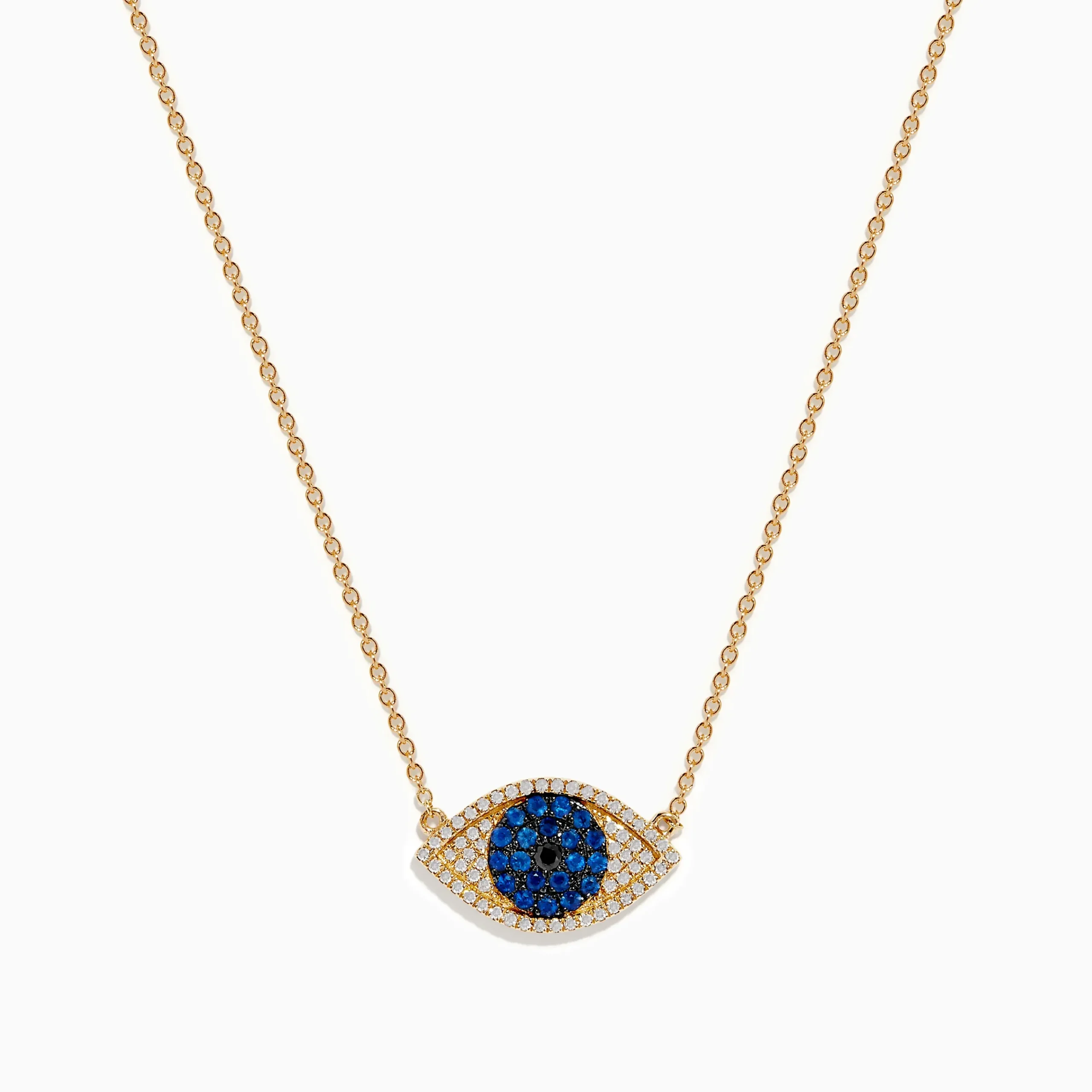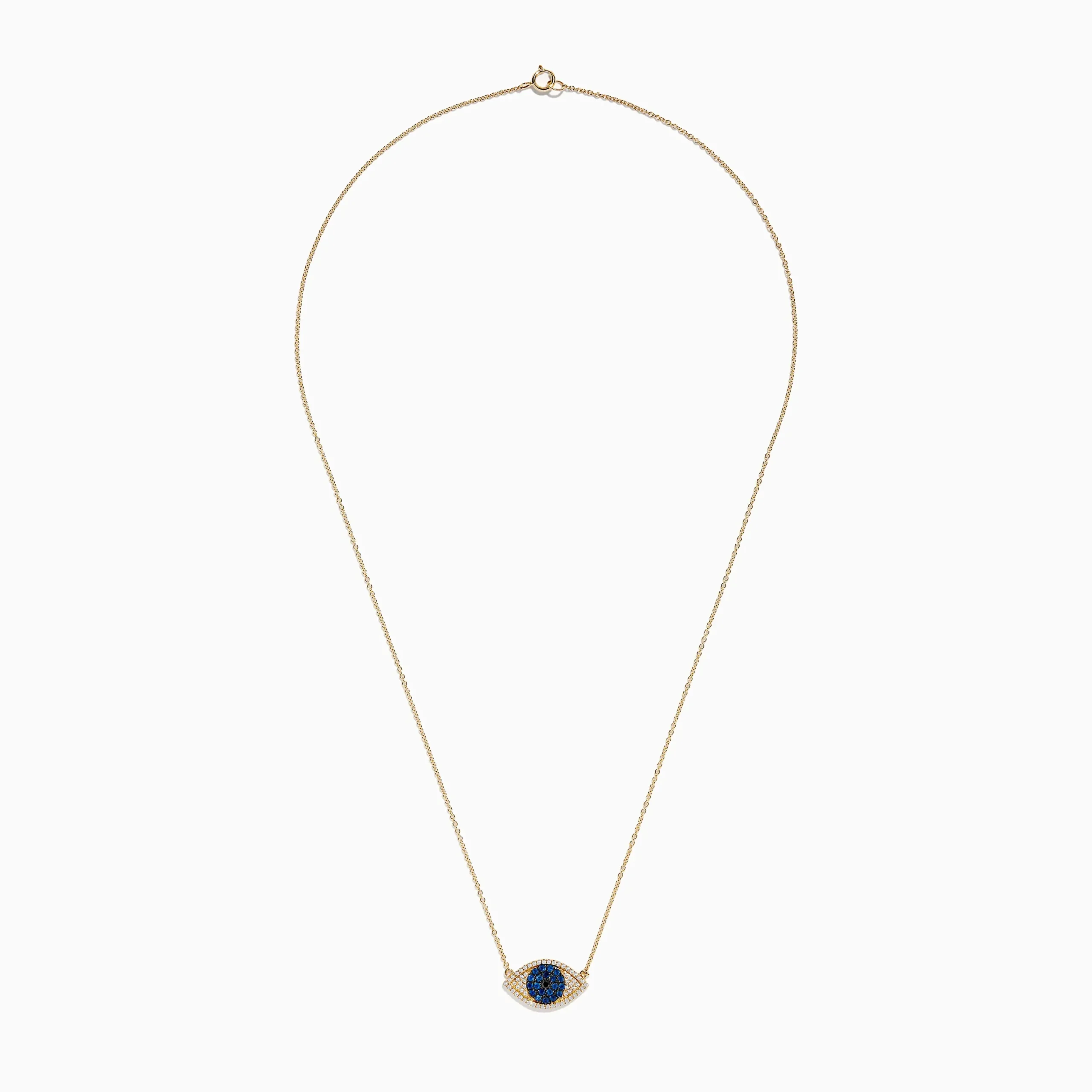 Effy 14K Yellow Gold Blue Sapphire and Diamond Evil Eye Necklace