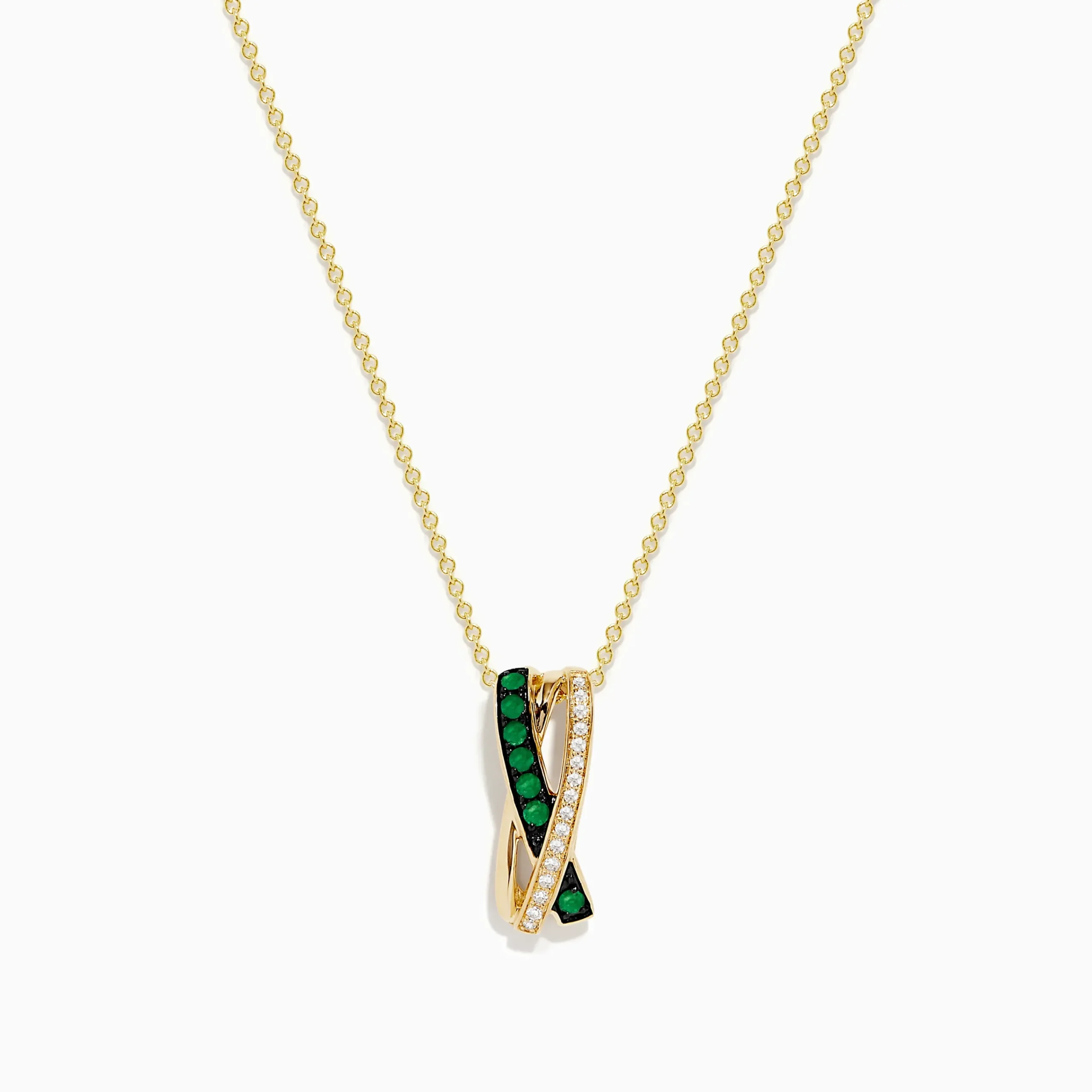 Effy 14K Yellow Gold Emerald and Diamond Crossover Pendant