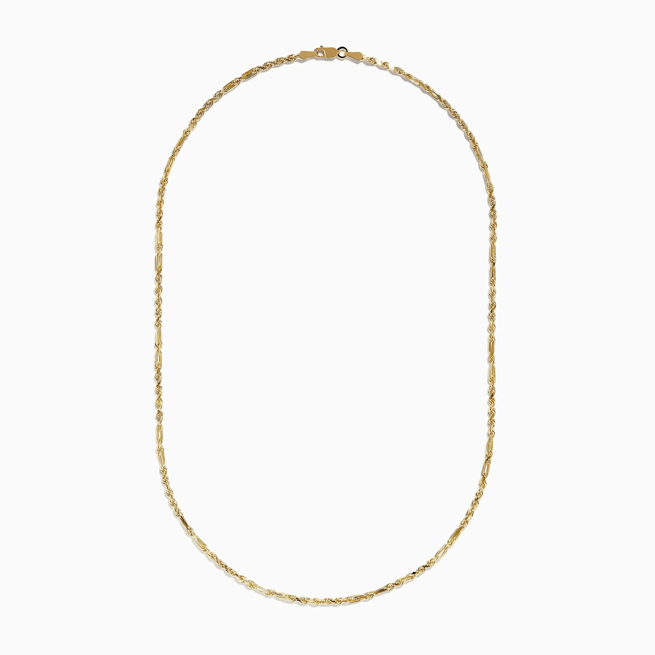 14K Yellow Gold Figaro Rope Chain Necklace 18″