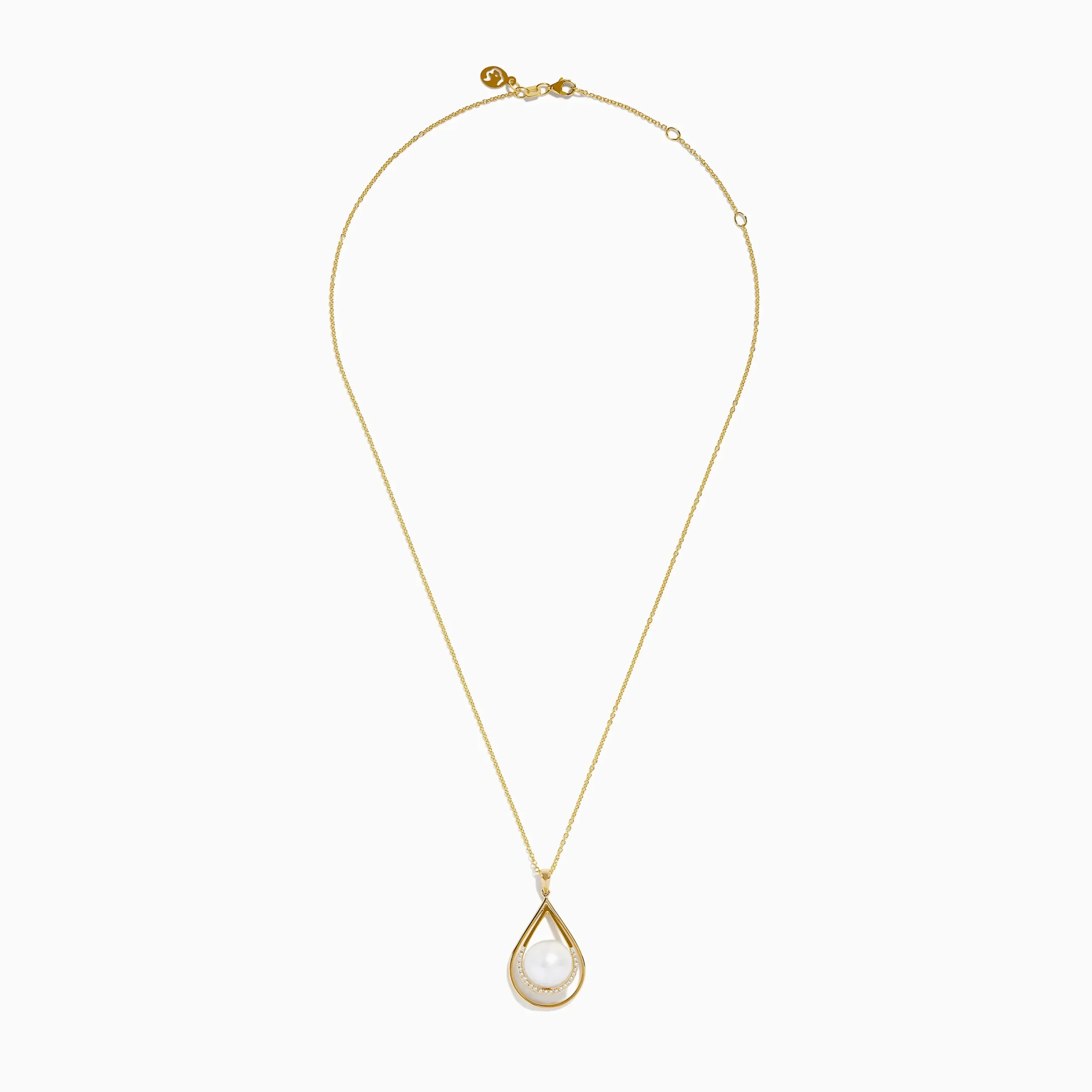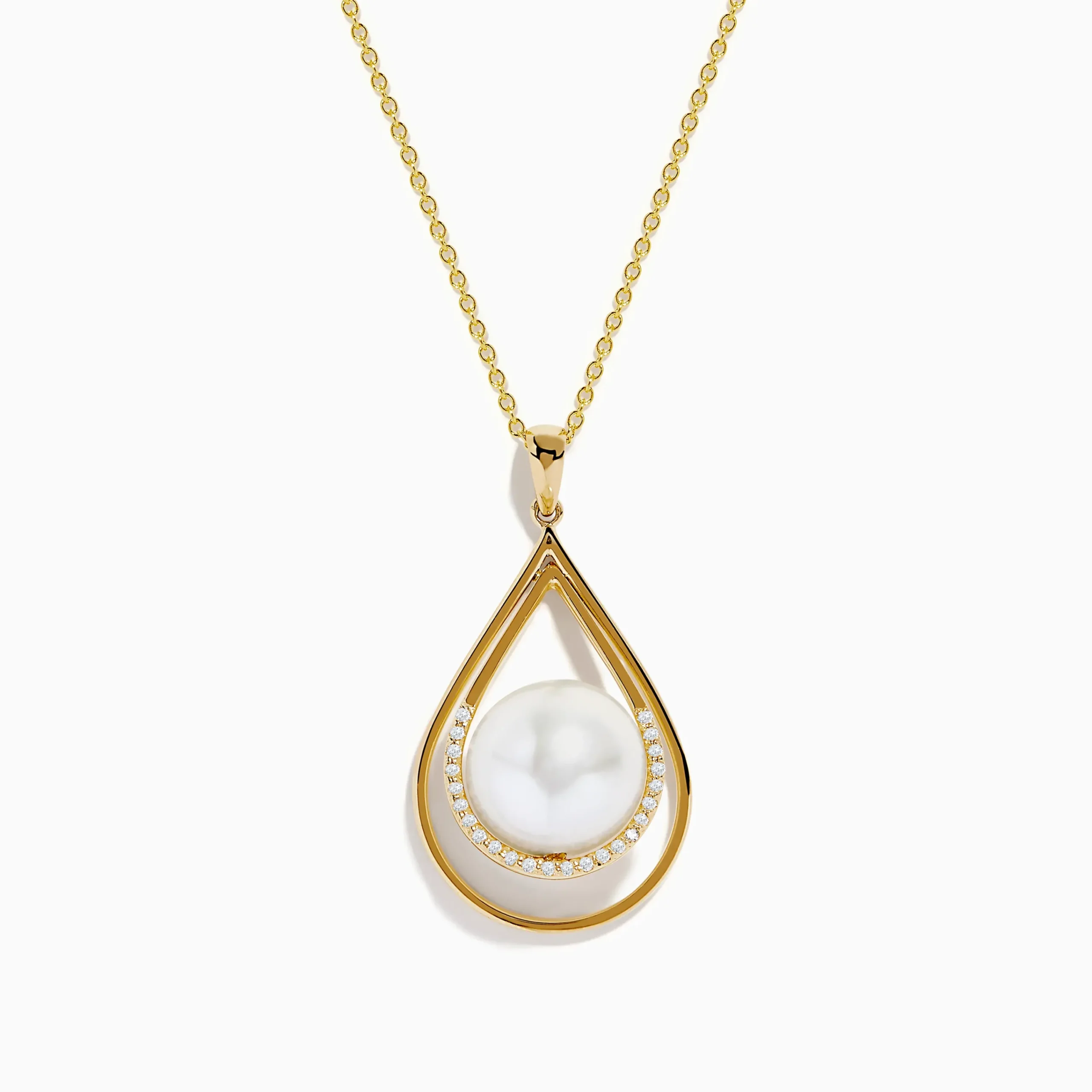 14K Yellow Gold Fresh Water Pearl and Diamond Drop Pendant
