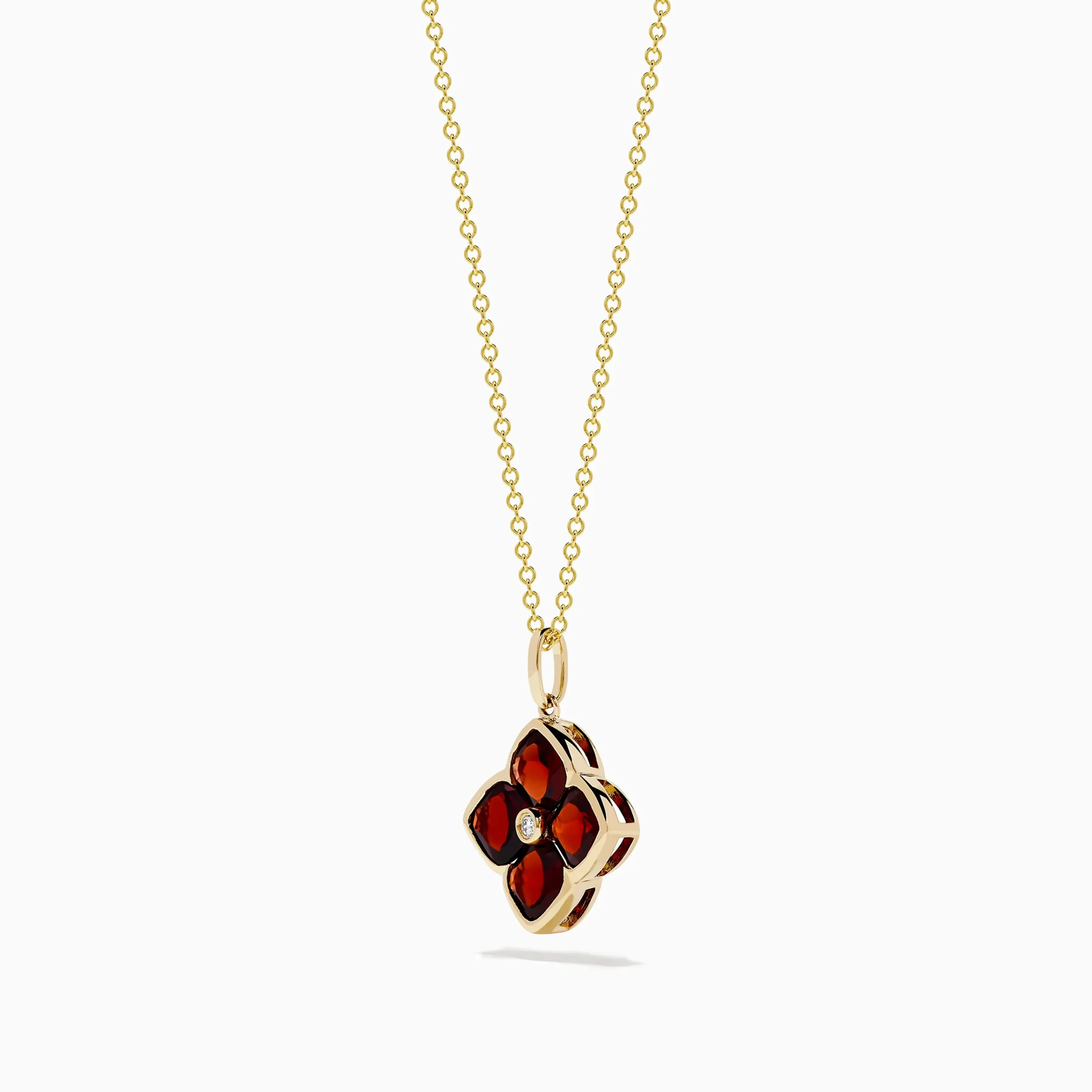 Metal:14K Gold Metal Color:YellowStone: Cushion Garnet 3.04 Stone 2: Round Diamond 0.02 14K Yellow Gold Garnet and Diamo…