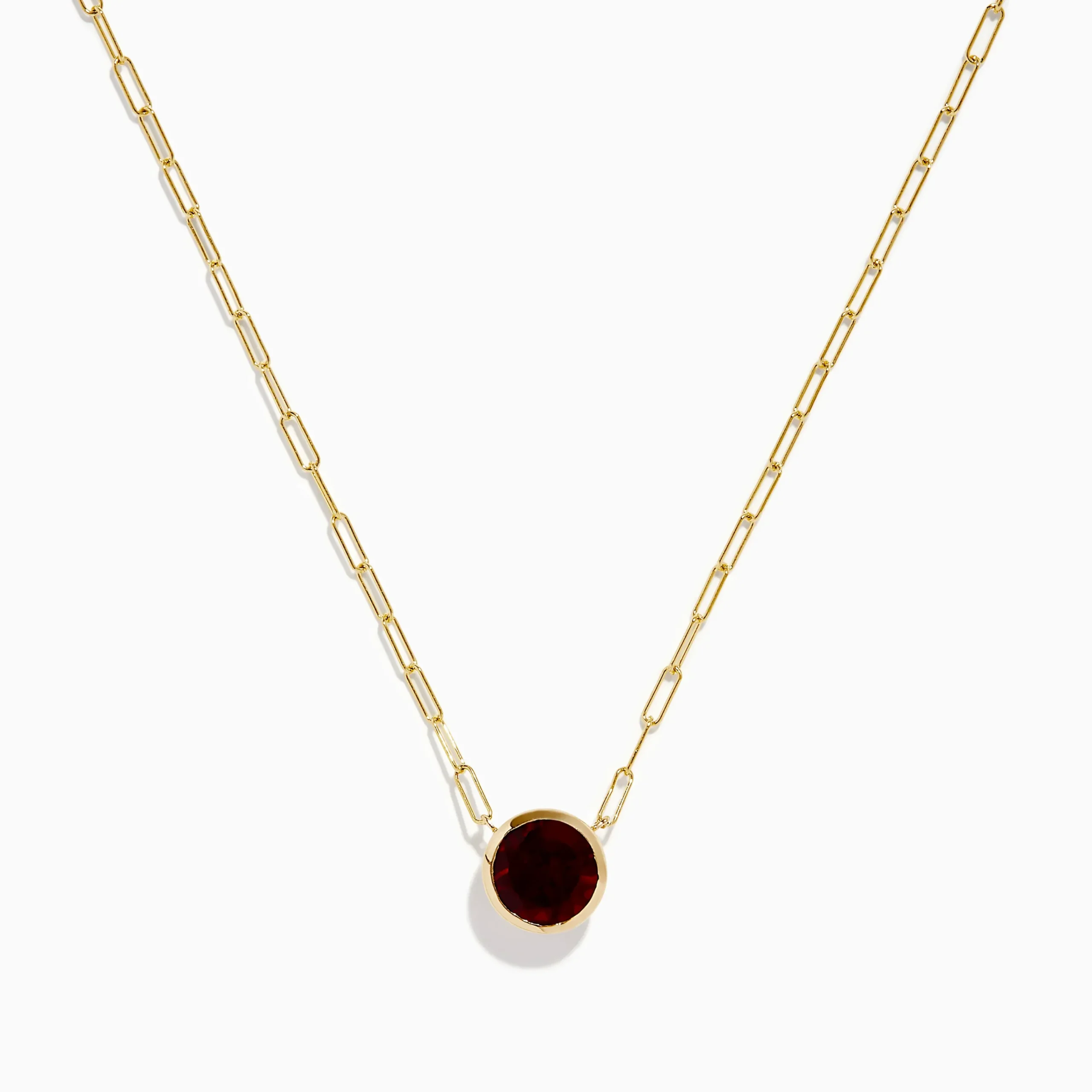 14K Yellow Gold Garnet Bezel Pendant with Paperclip Chain