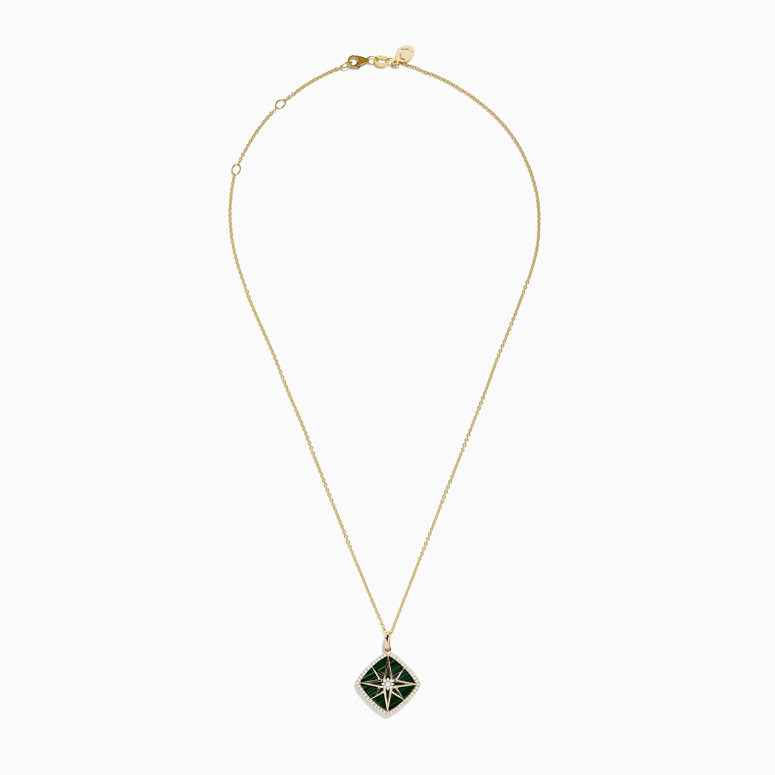 14K Yellow Gold Malachite and Diamond Compass Pendant