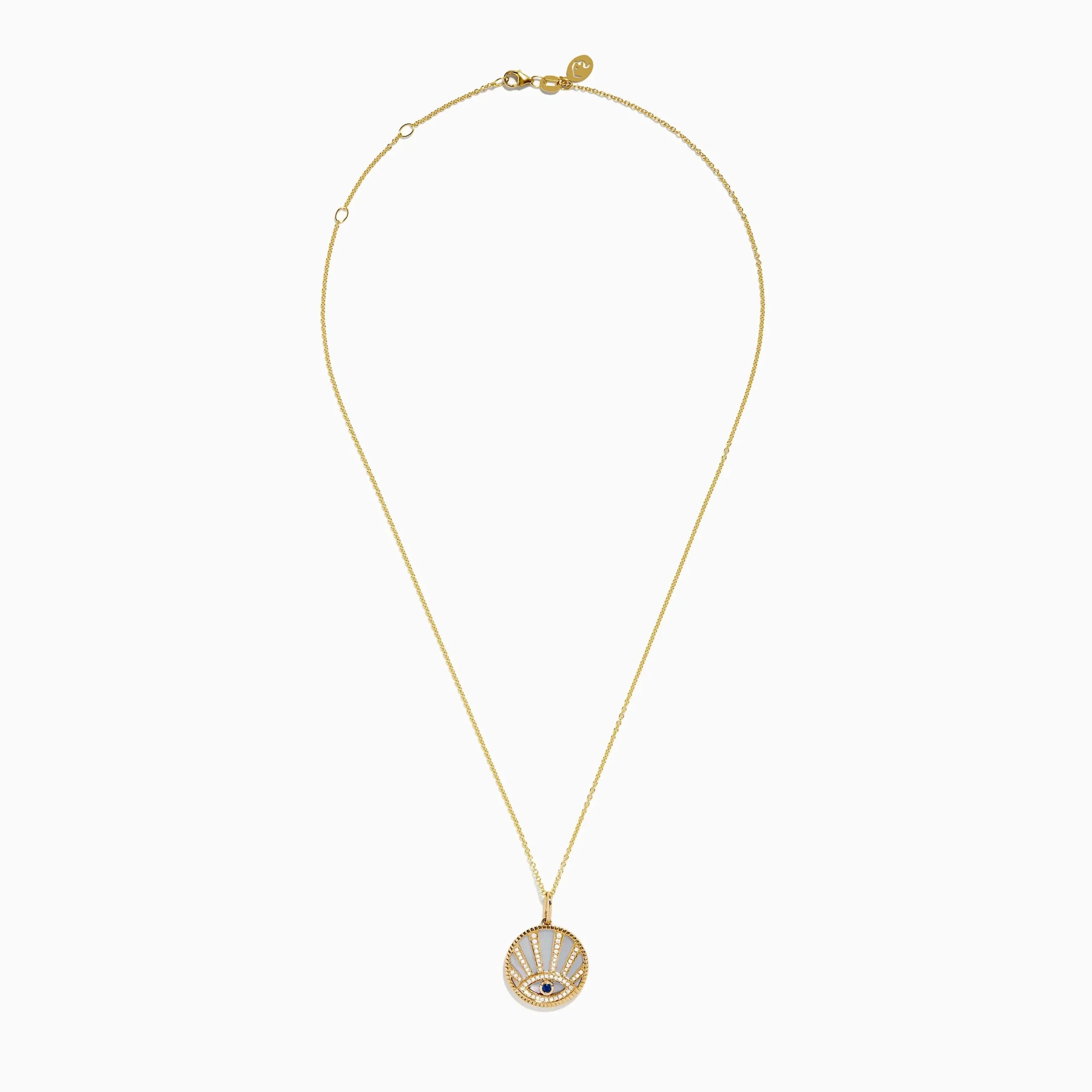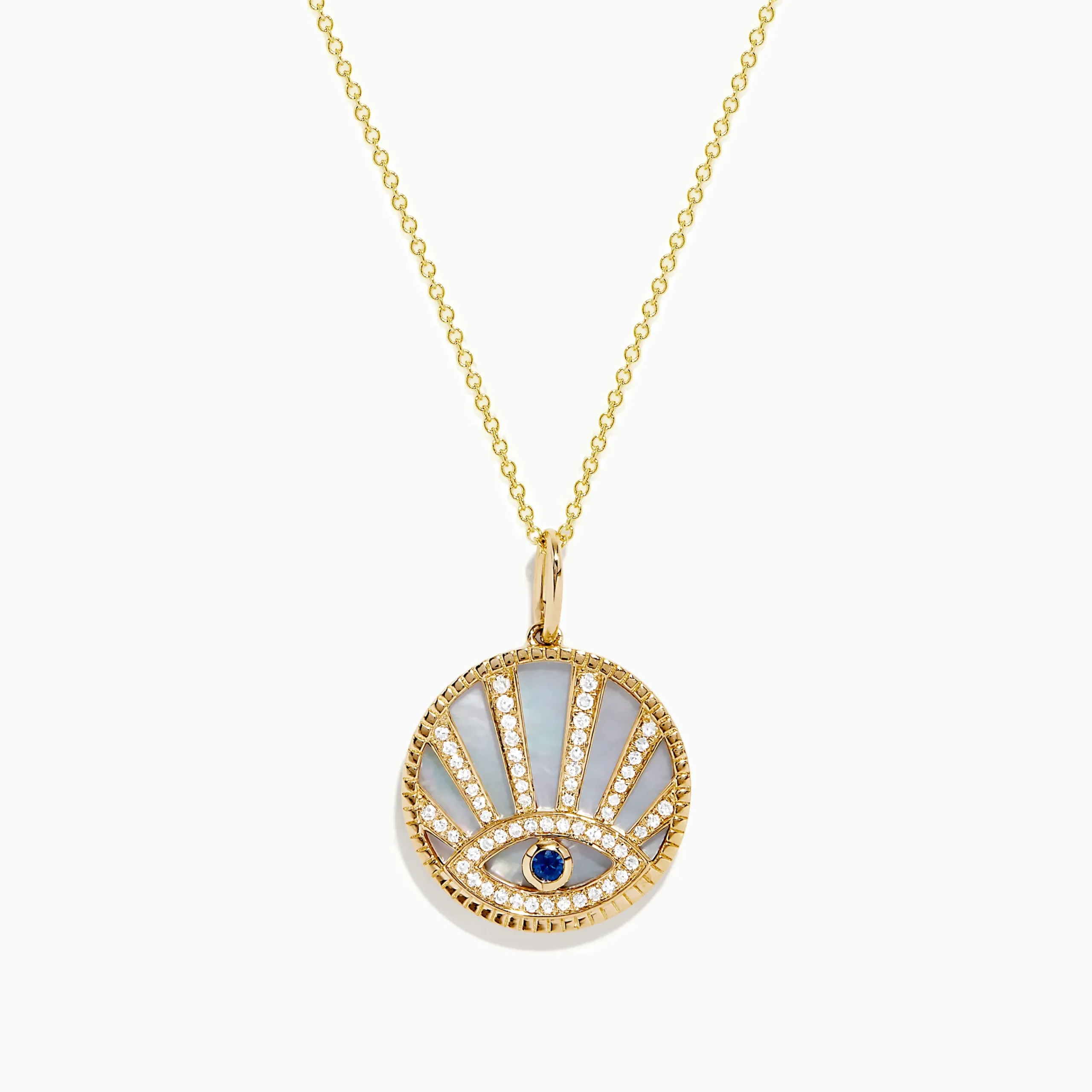 14K Yellow Gold Mother Of Pearl, Diamond and Sapphire Evil Eye Pendant
