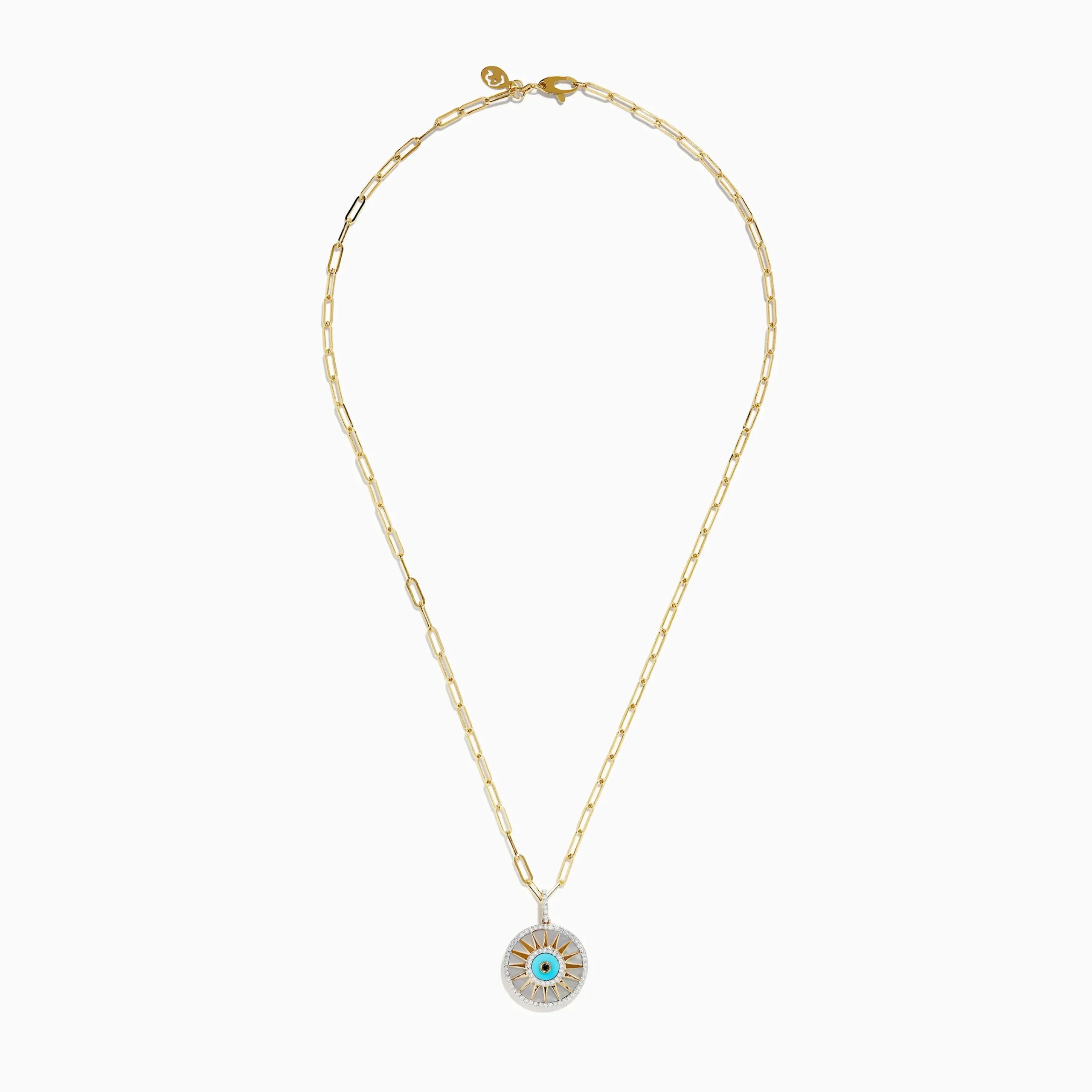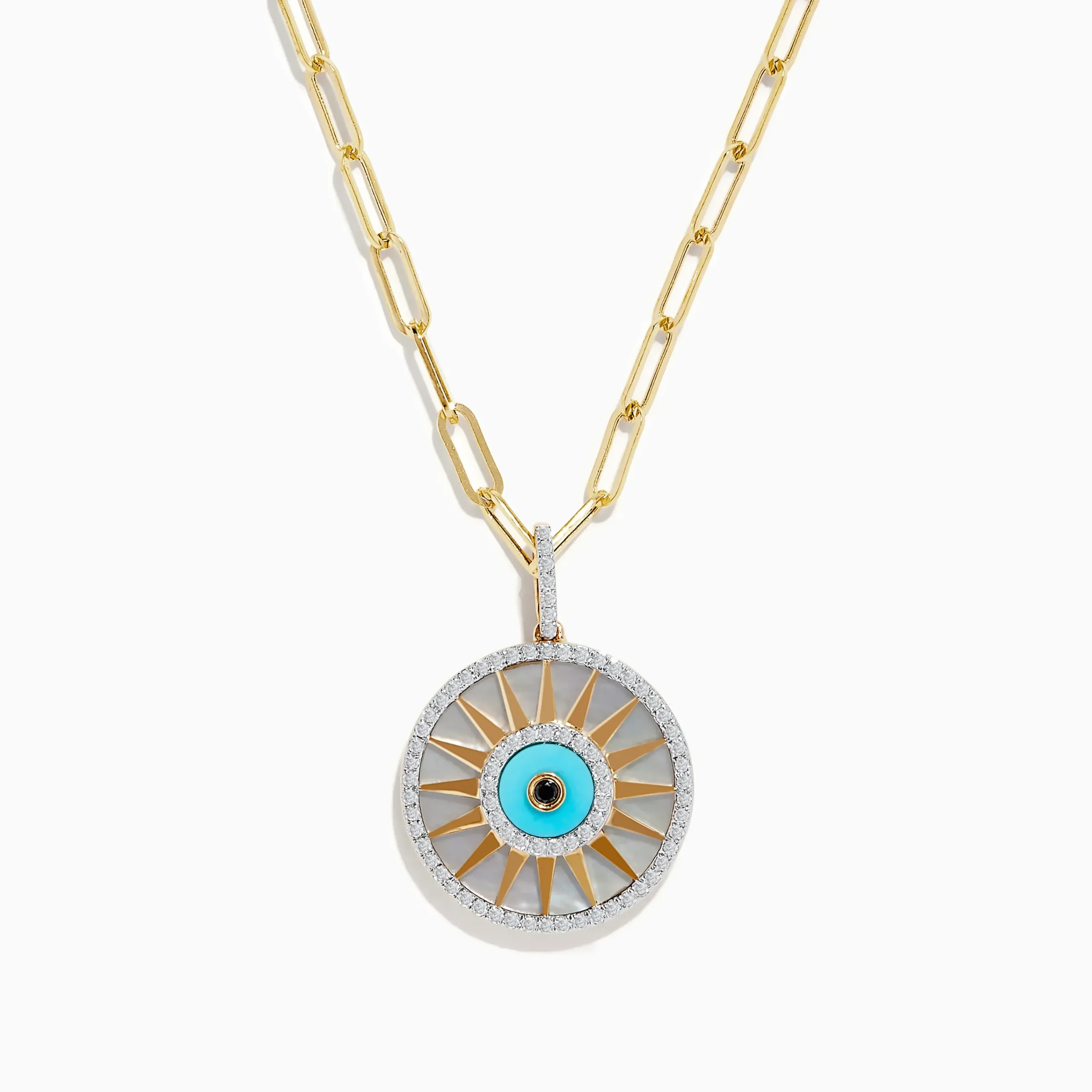 14K Yellow Gold Mother Of Pearl, Turquoise and Diamond Evil Eye Pendant