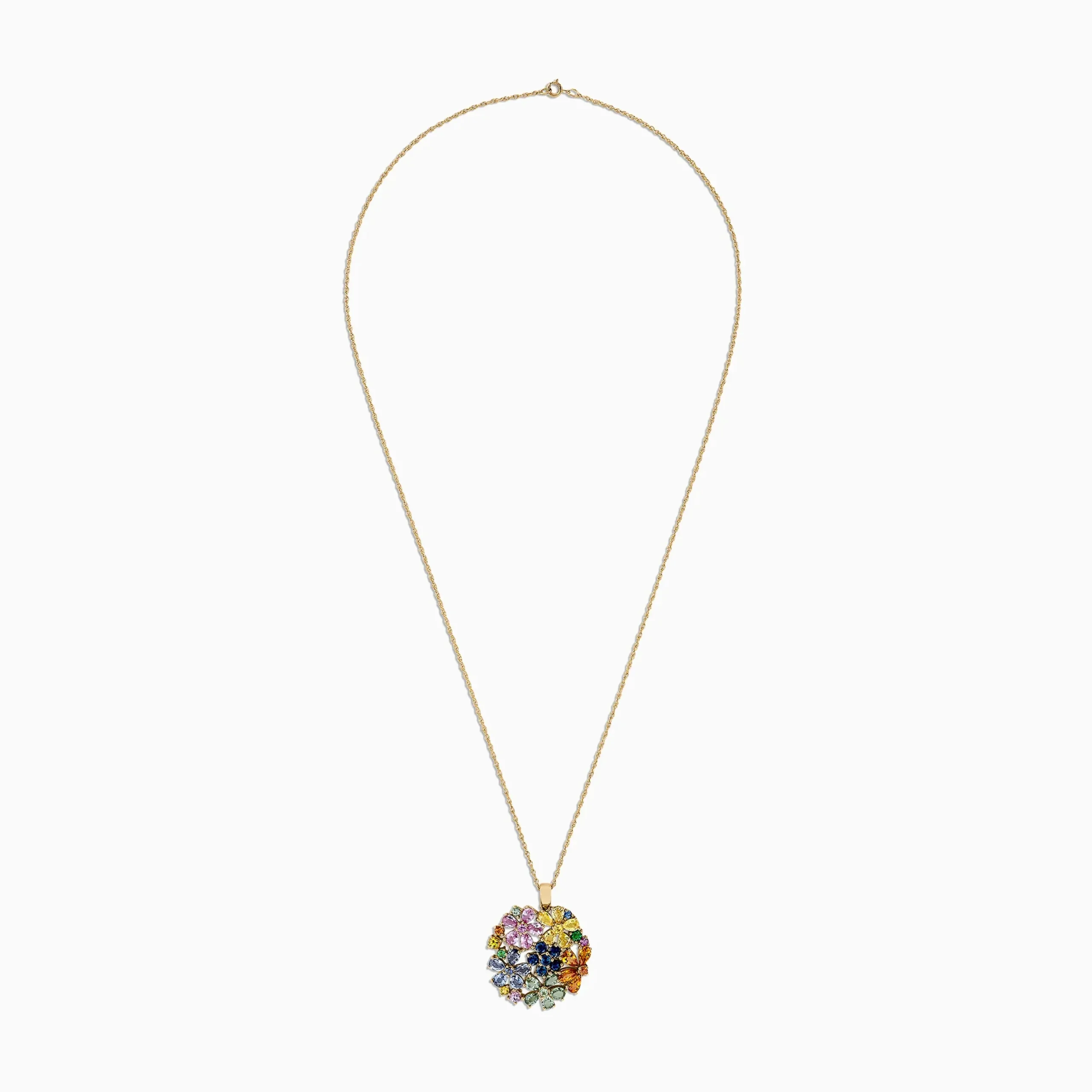 Effy 14K Yellow Gold Multi Sapphire and Tsavorite Floral Pendant, 7.53 TCW