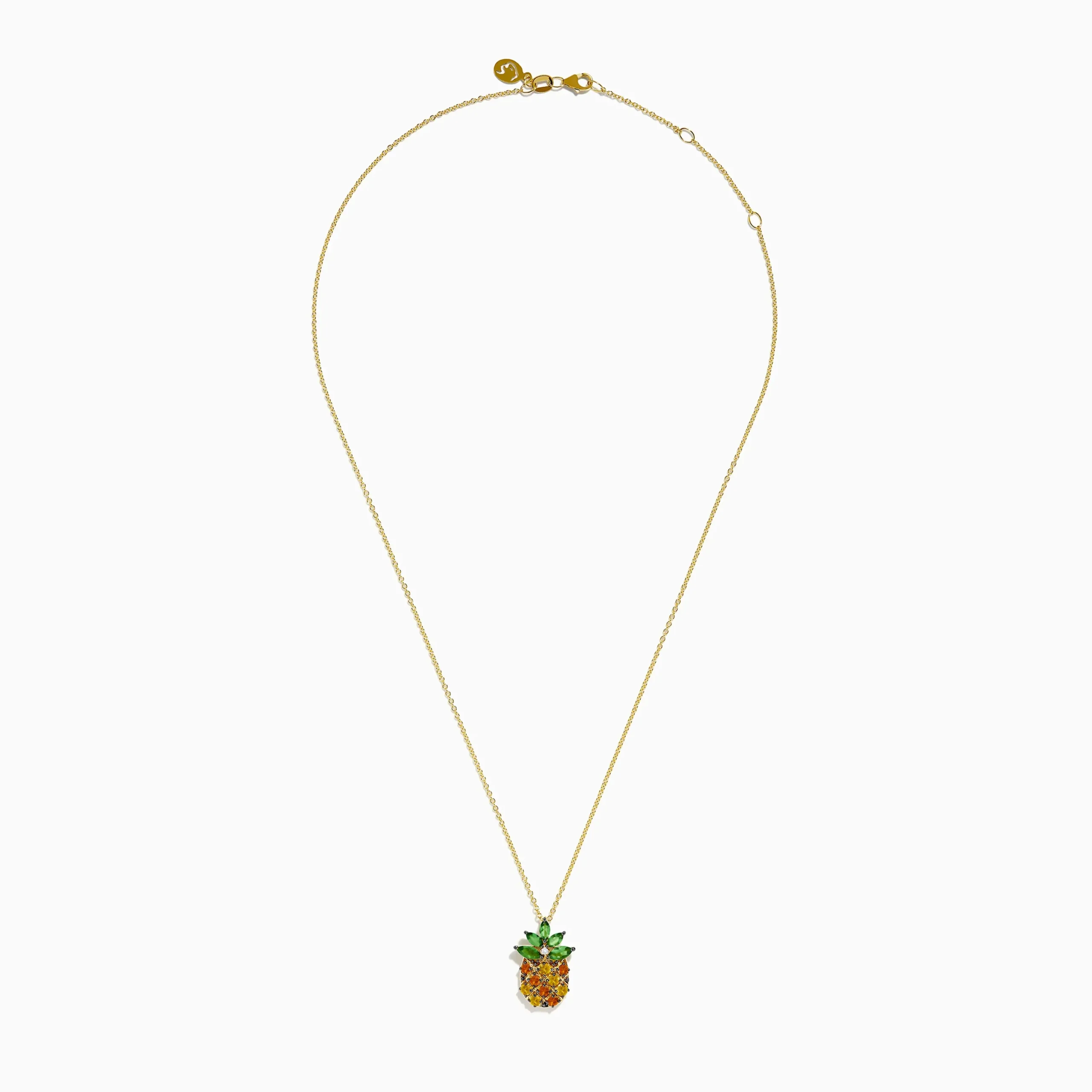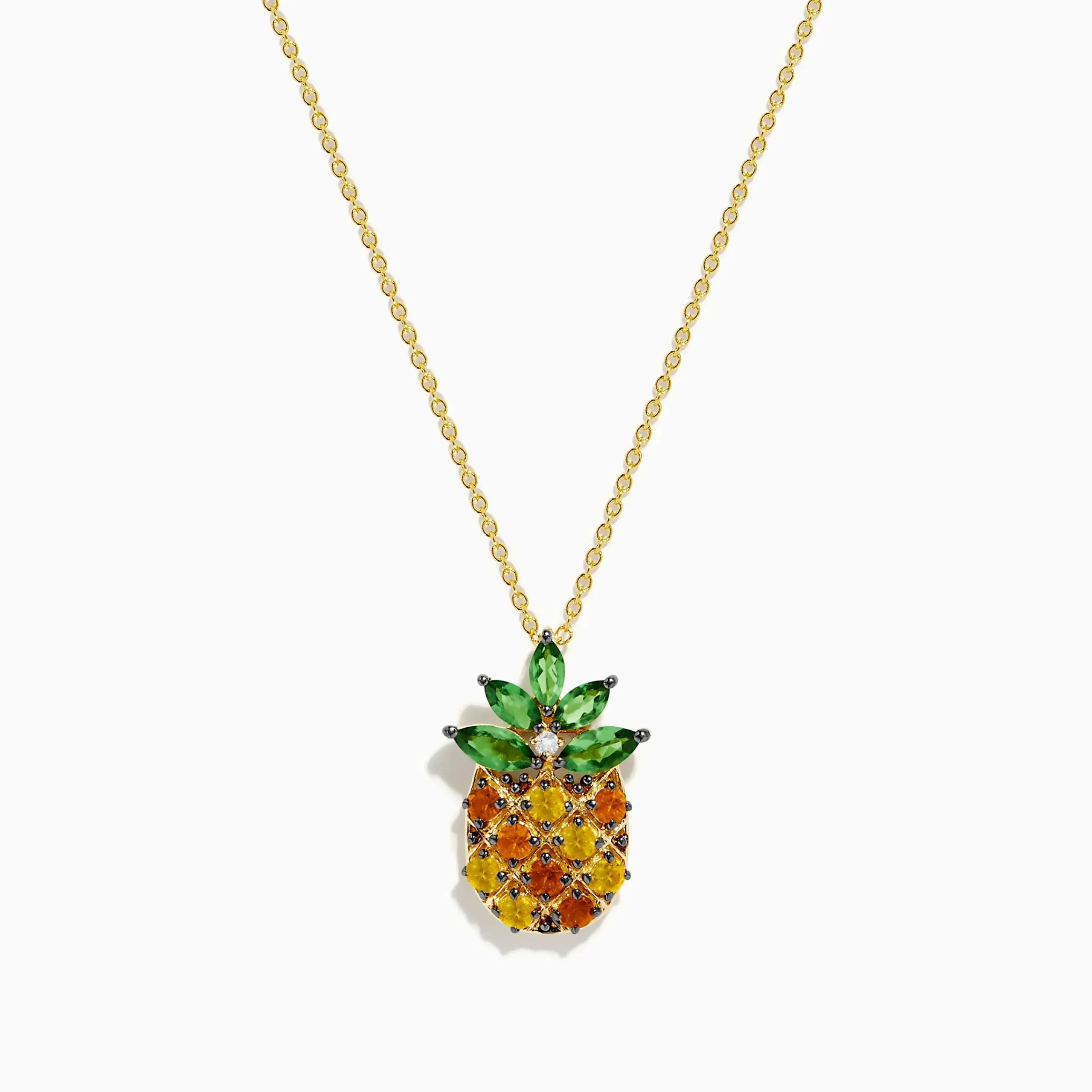 14K Yellow Gold Multi Sapphire Tsavorite and Diamond Pinapple Pendant