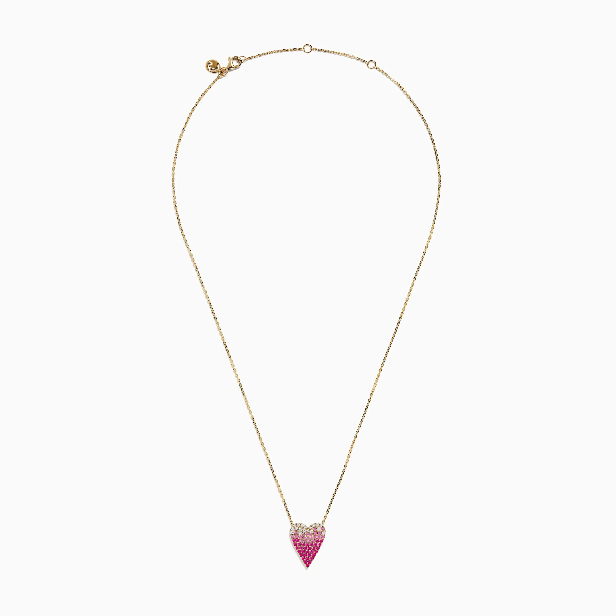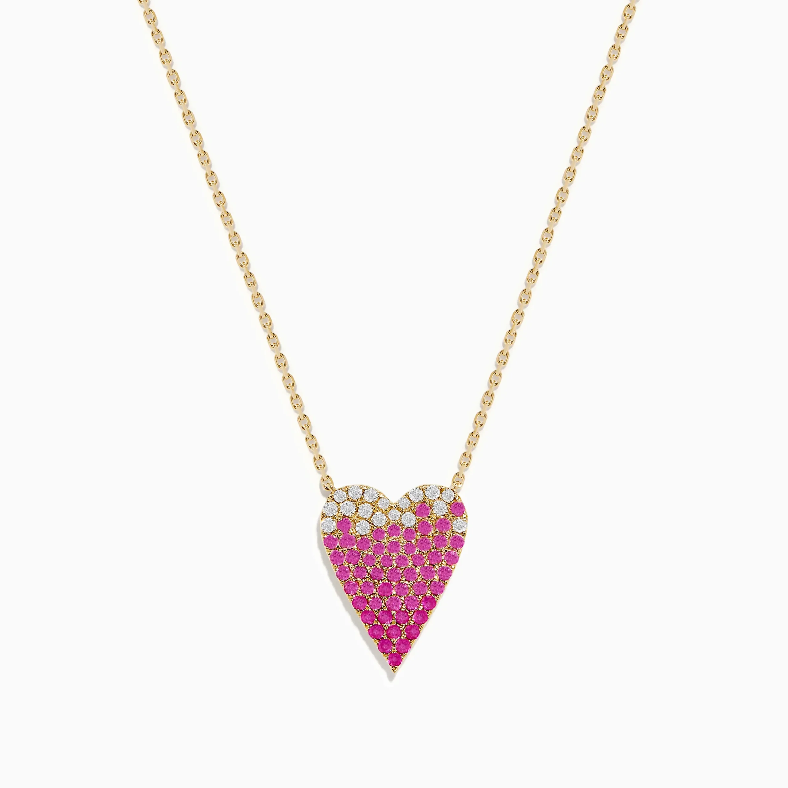 14K Yellow Gold Pink Sapphire and Diamond Heart Necklace