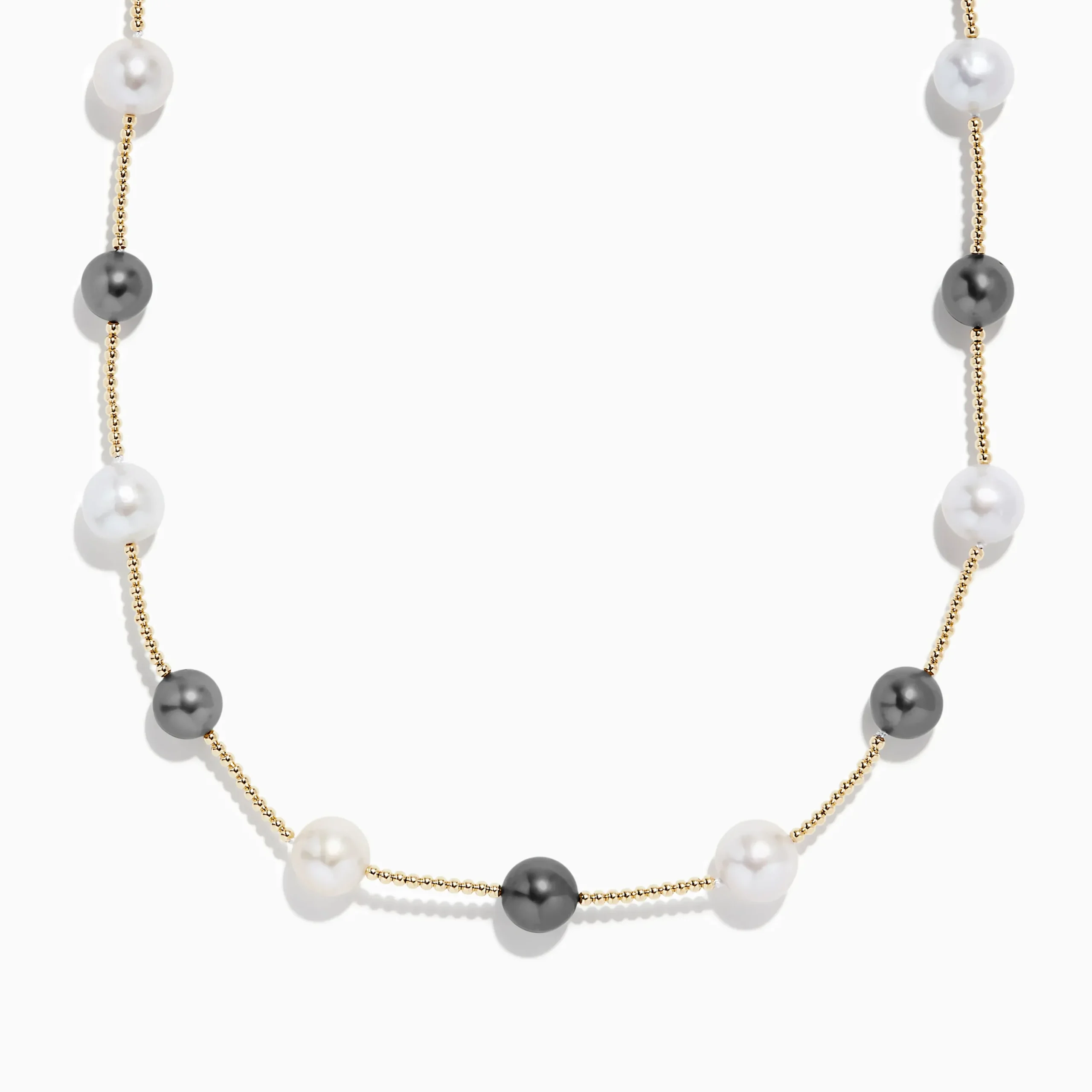 Metal:14K Gold Metal Color:YellowStone: Round Pearl 9.0mm14K Yellow Gold Tahitian and Fresh Water Pearl Necklace