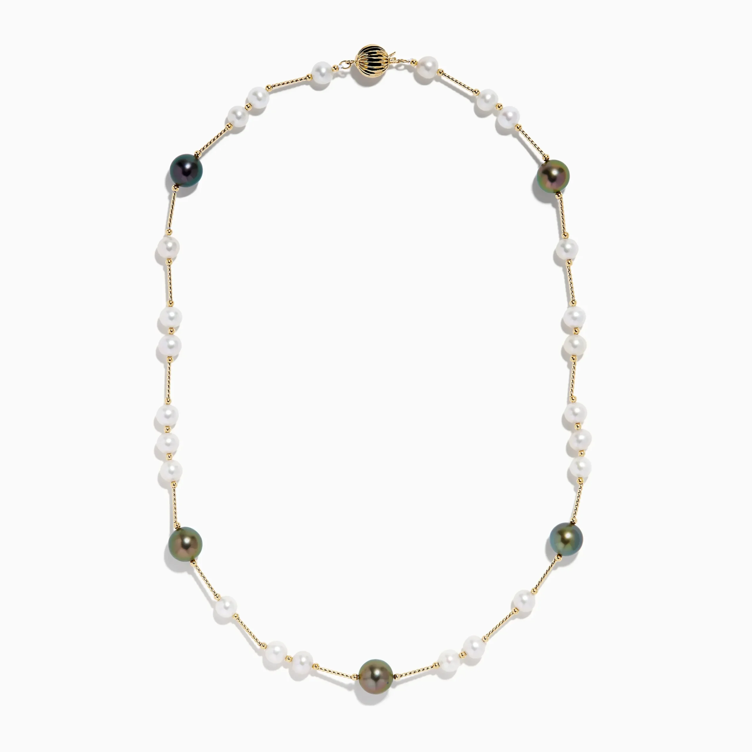 Metal:14K Gold Metal Color:YellowStone: Round Pearl 14K Yellow Gold Tahitian and Freshwater Pearl Necklace
