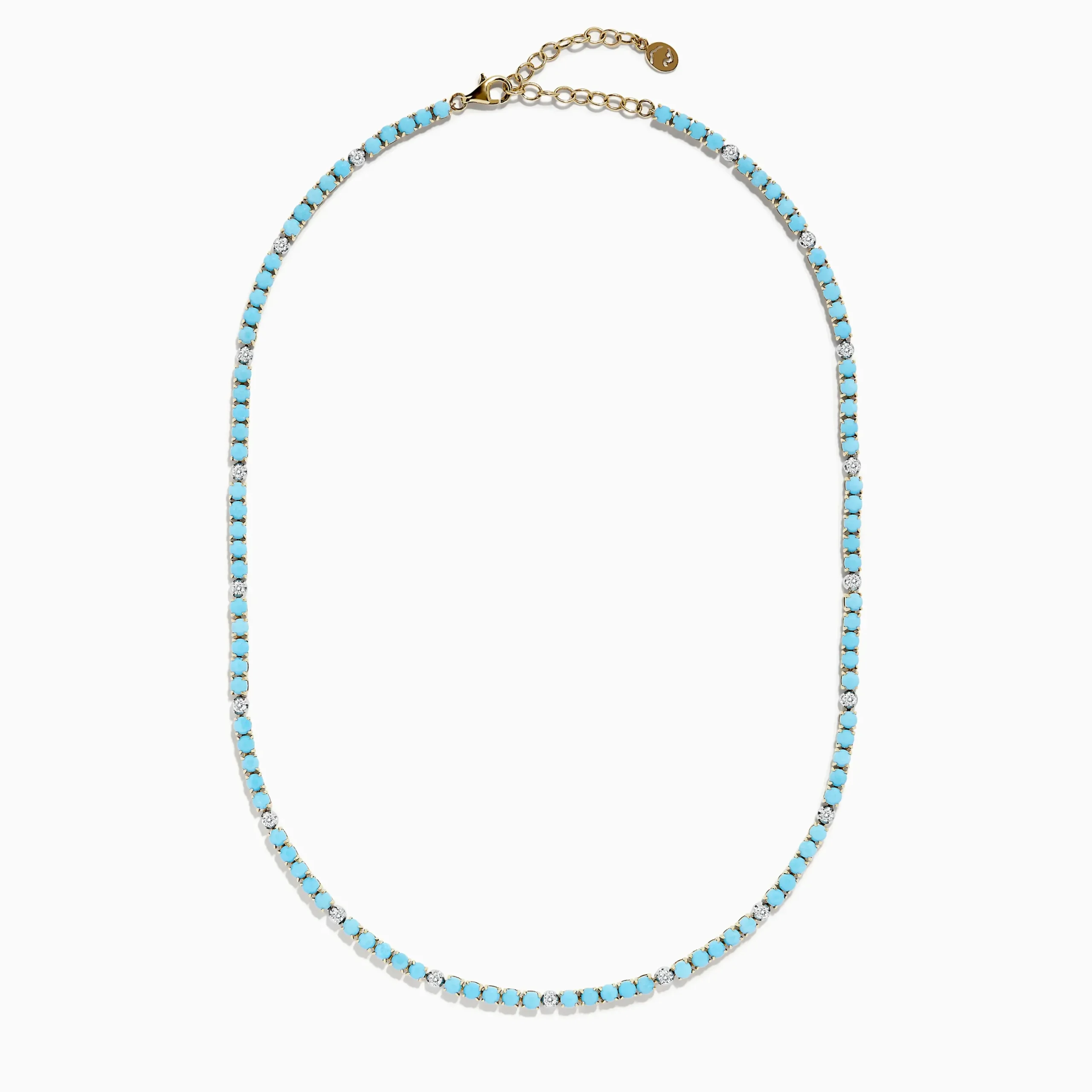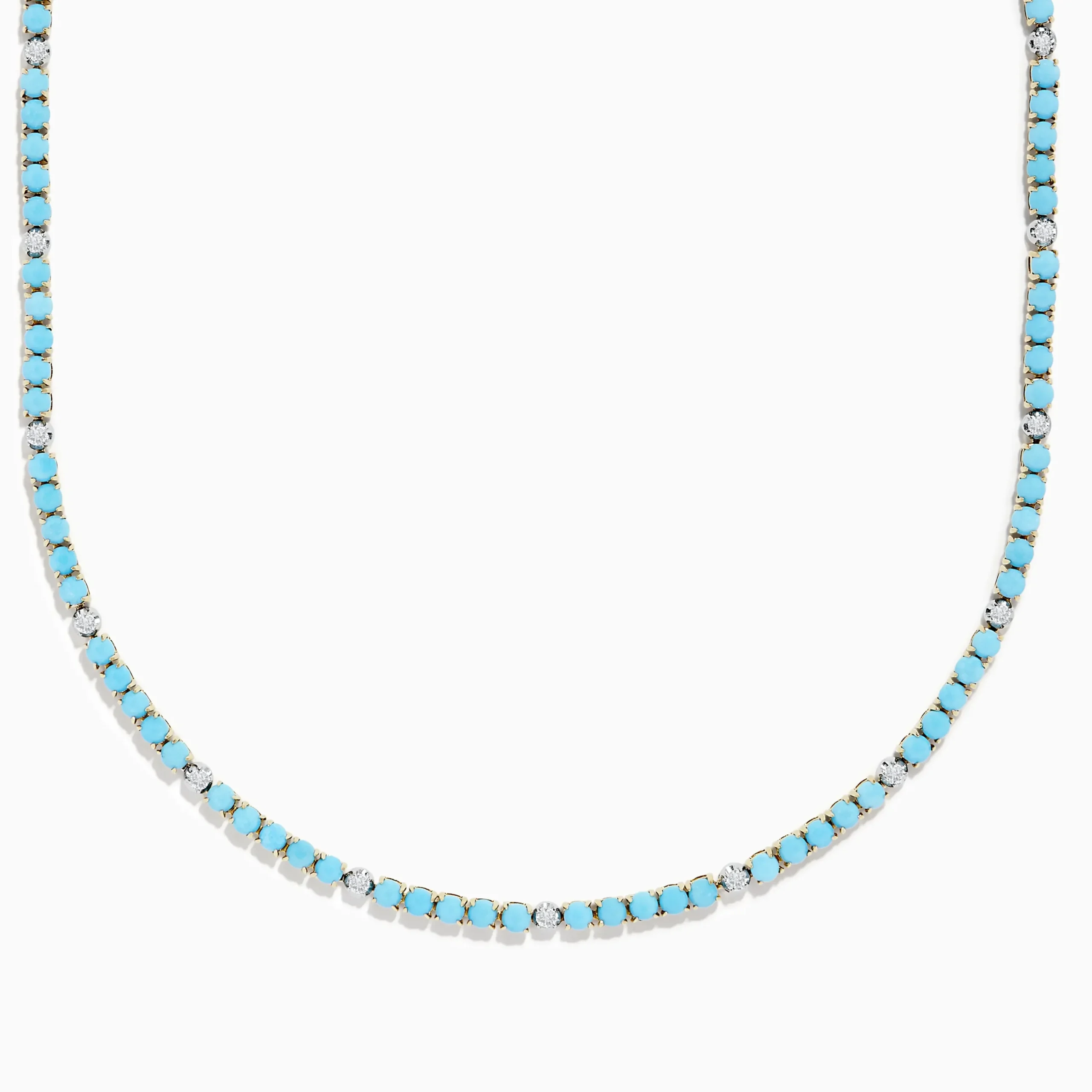 Effy 14k Yellow Gold Turquoise and Diamond Tennis Necklace