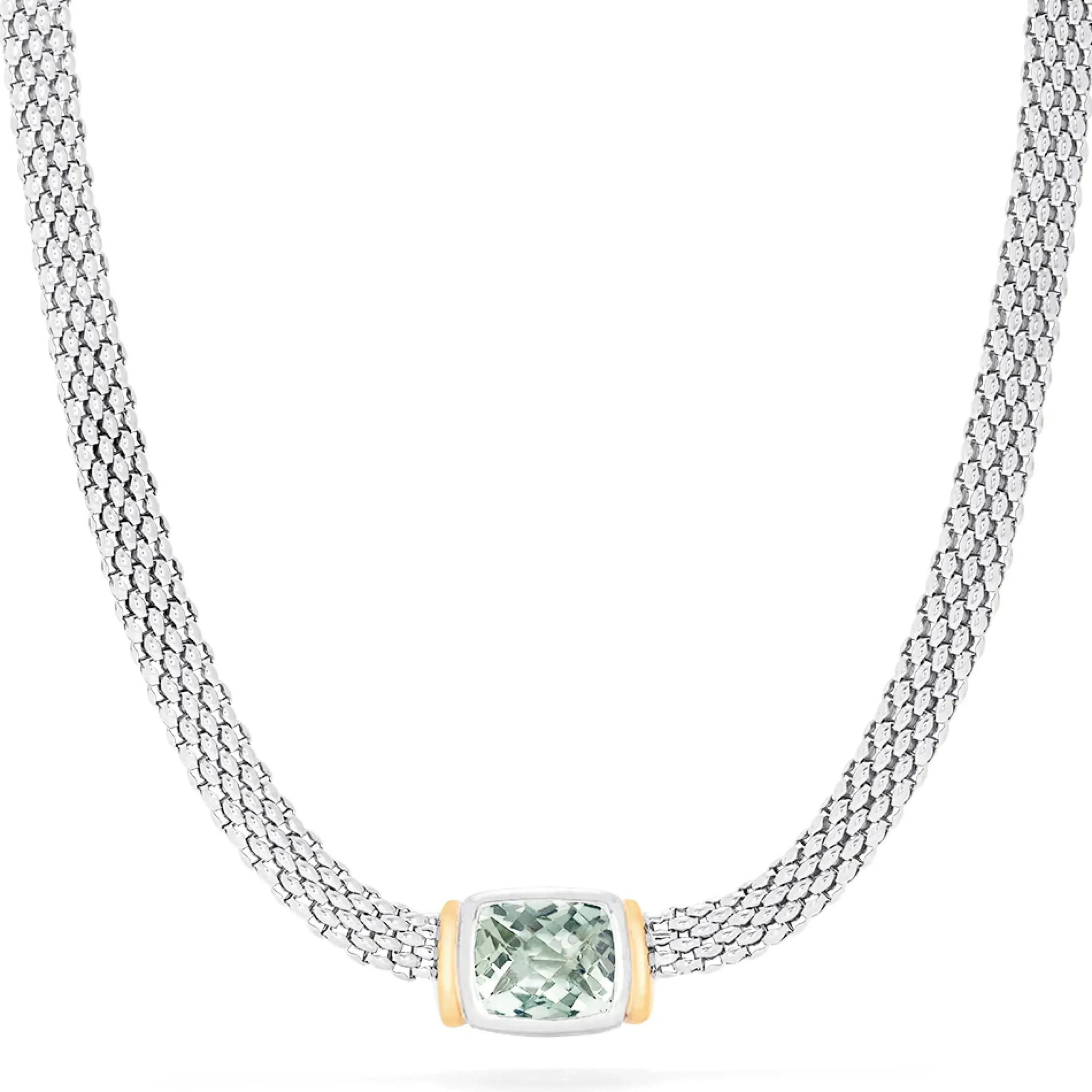 Effy 925 Sterling Silver and 18K Gold Green Amethyst Necklace, 4.70 TCW