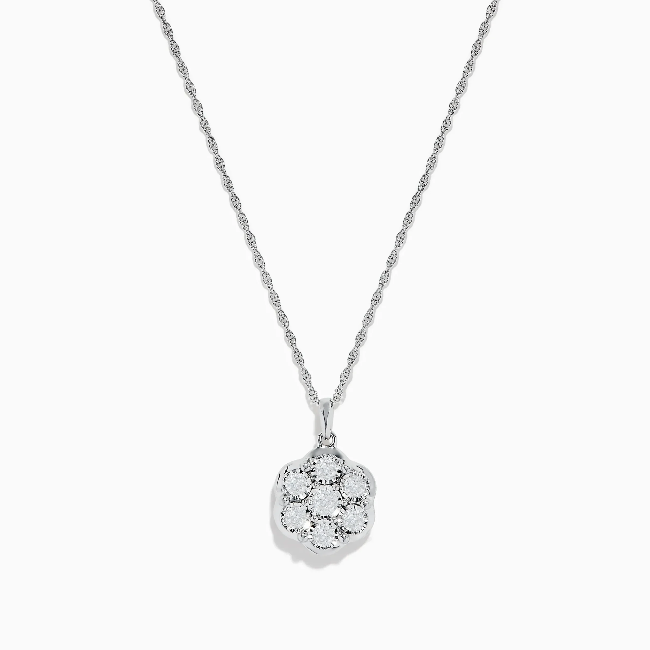 Metal:Sterling Silver Metal Color:WhiteStone: Round Diamond 0.46925 Sterling Silver Diamond Cluster Pendant