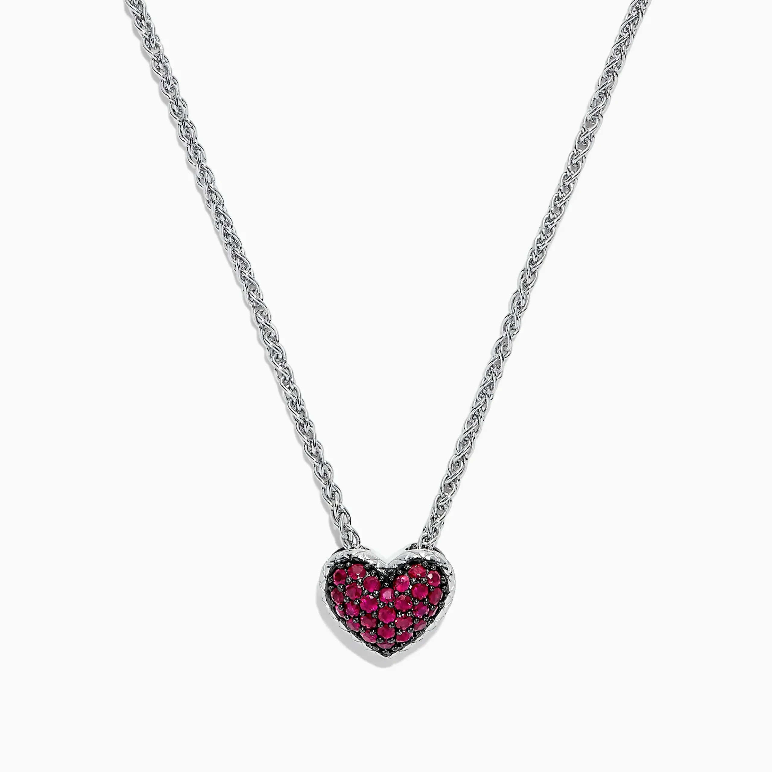 Effy 925 Sterling Silver Ruby Heart Pendant, 0.65 TCW