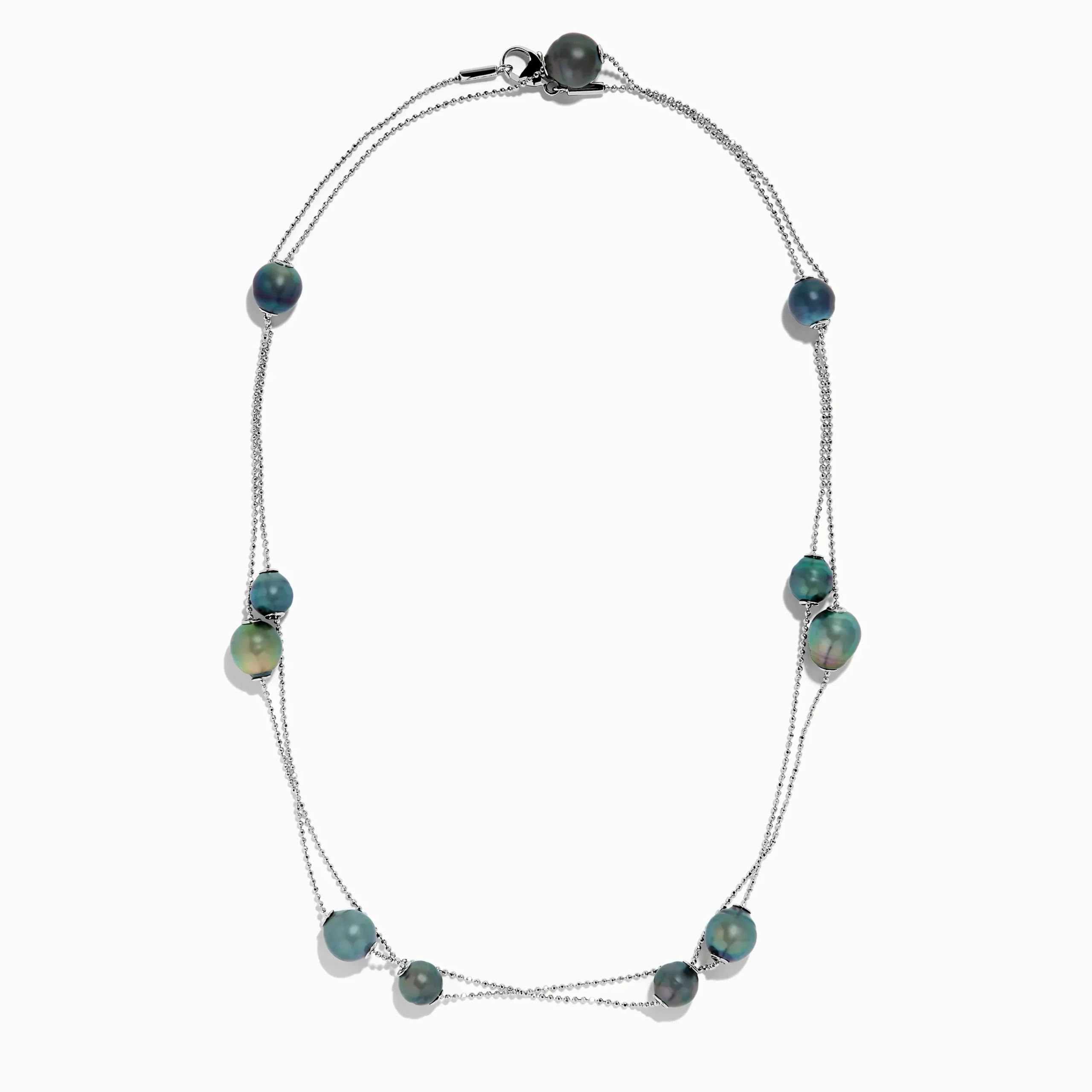 925 Sterling Silver Tahitian Pearl Station Necklace