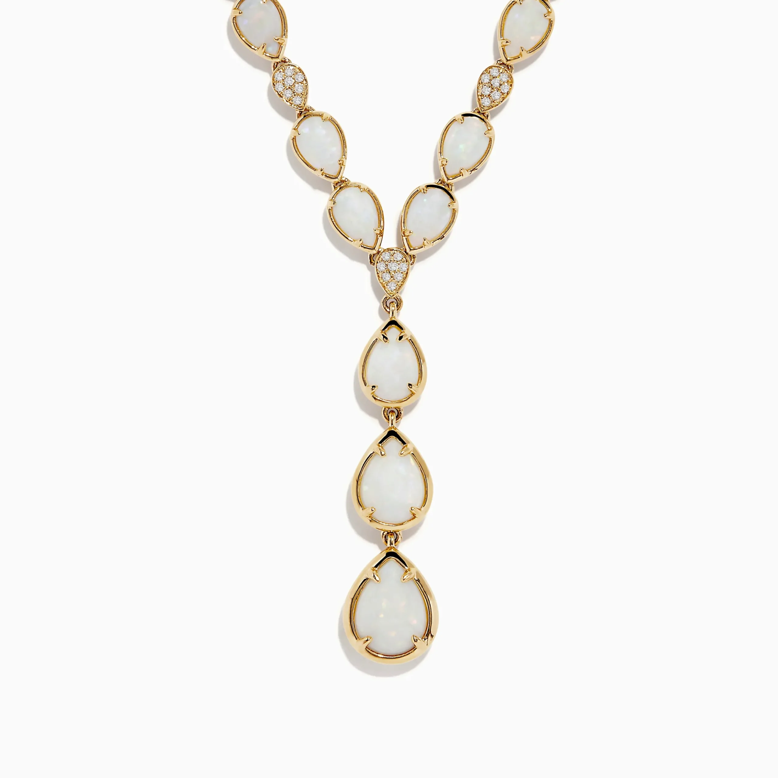 Aurora 14K Yellow Gold Opal and Diamond Y Necklace