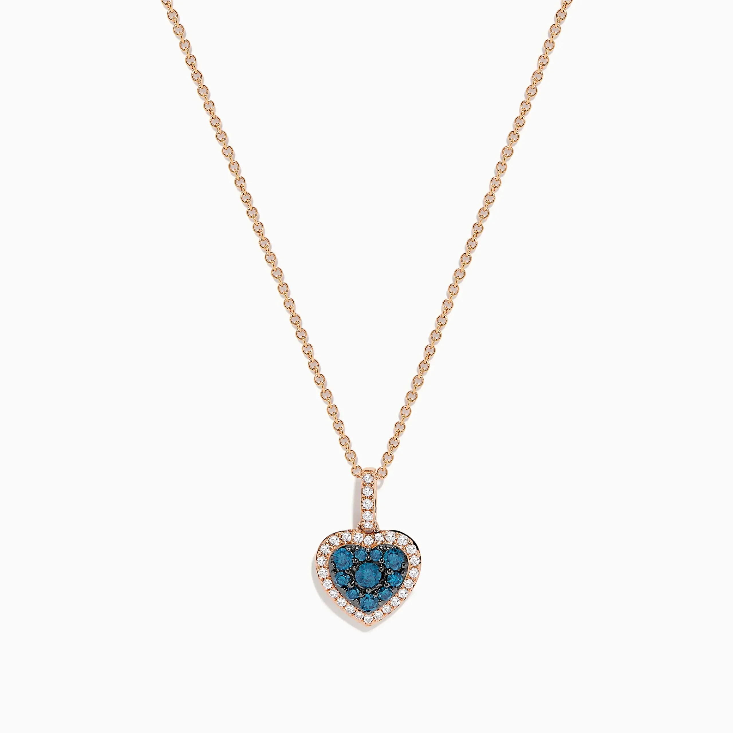 Effy Bella Bleu 14K Rose Gold Blue and White Diamond Heart Pendant