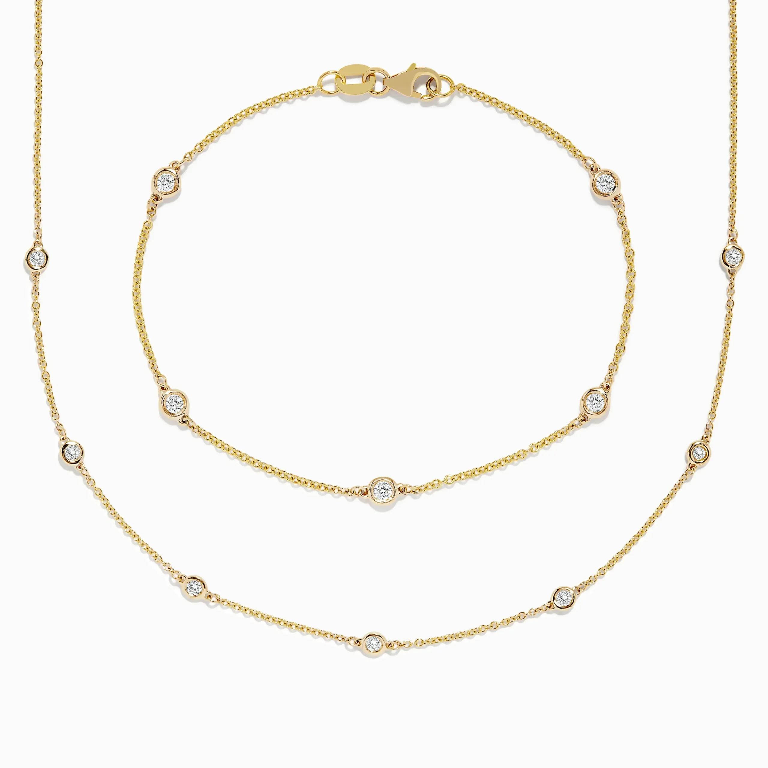 Metal:14K Gold Metal Color:YellowStone: Round Diamond 0.59Effy D’Oro 14K Gold Diamond Station Necklace and Bracelet Set …