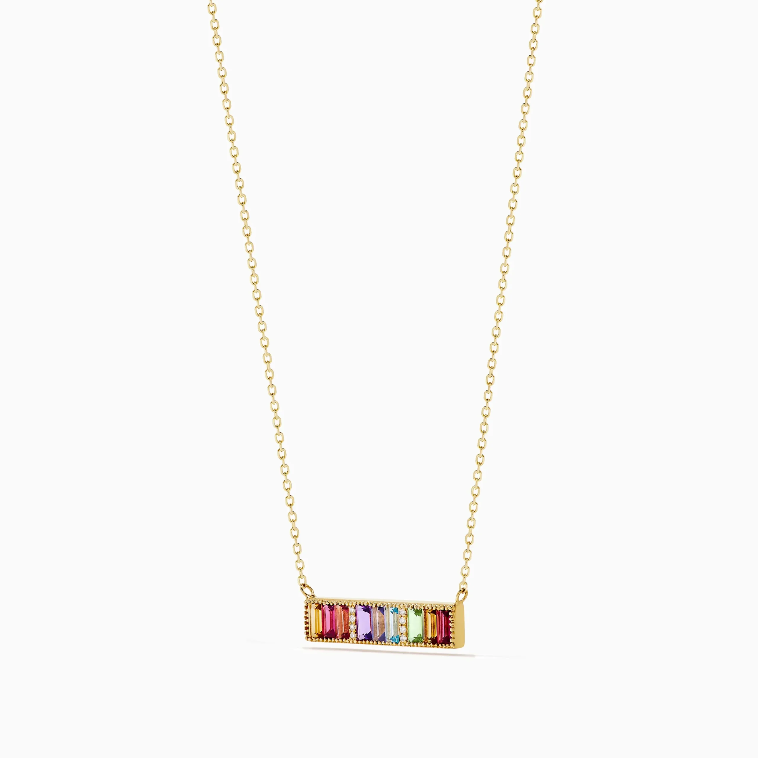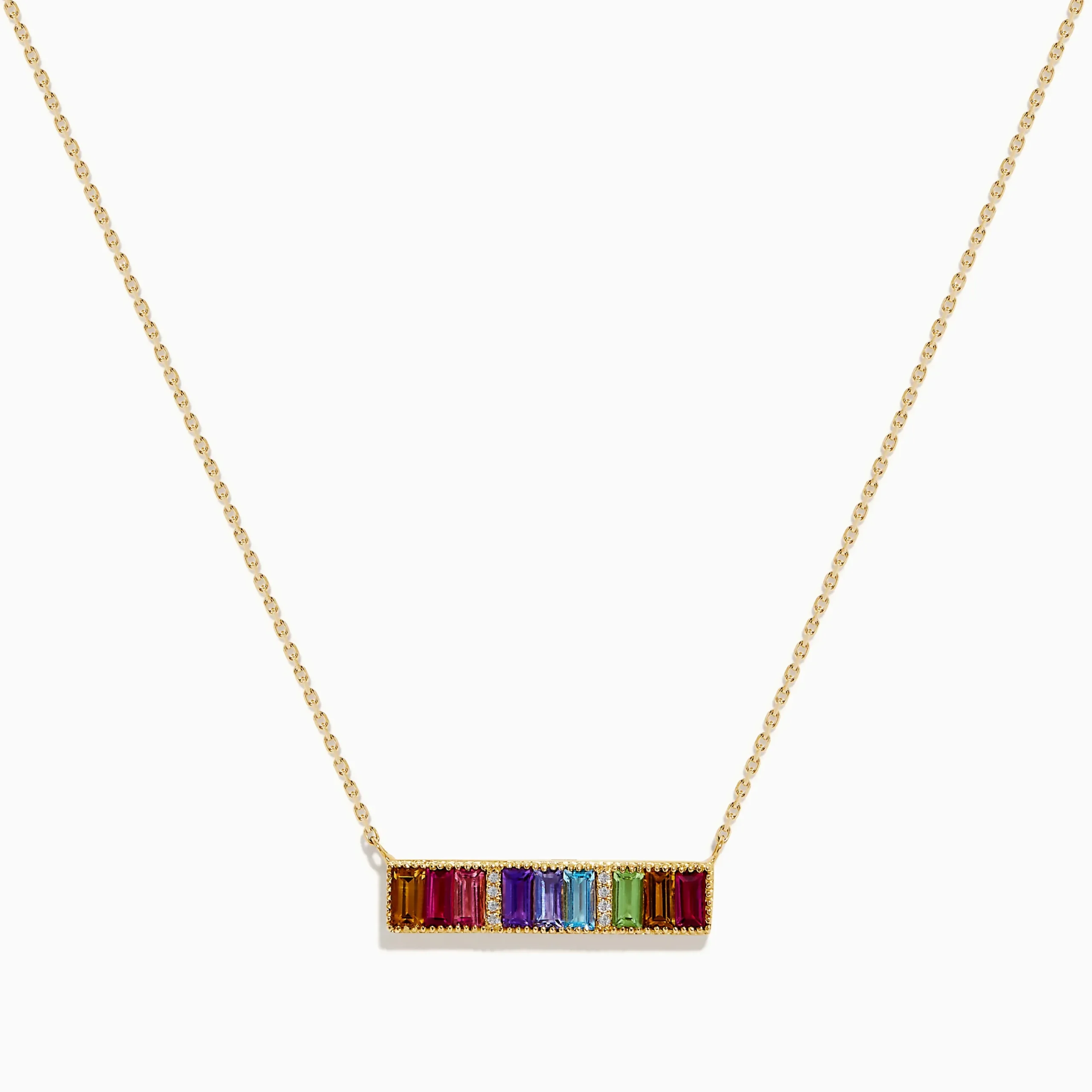 Mosaic 14K Yellow Gold Multi Color Gemstone and Diamond Collar Bone Bar Necklace