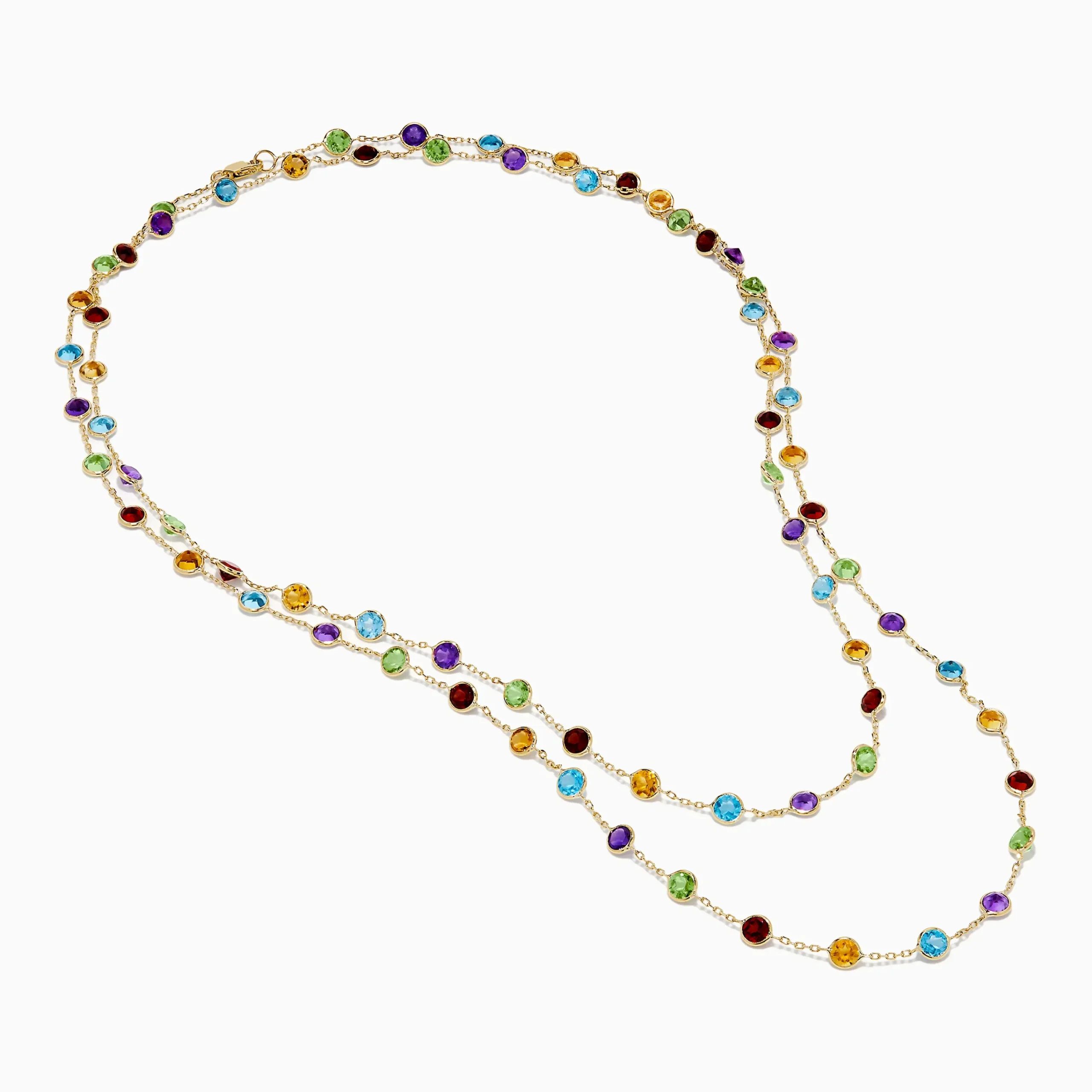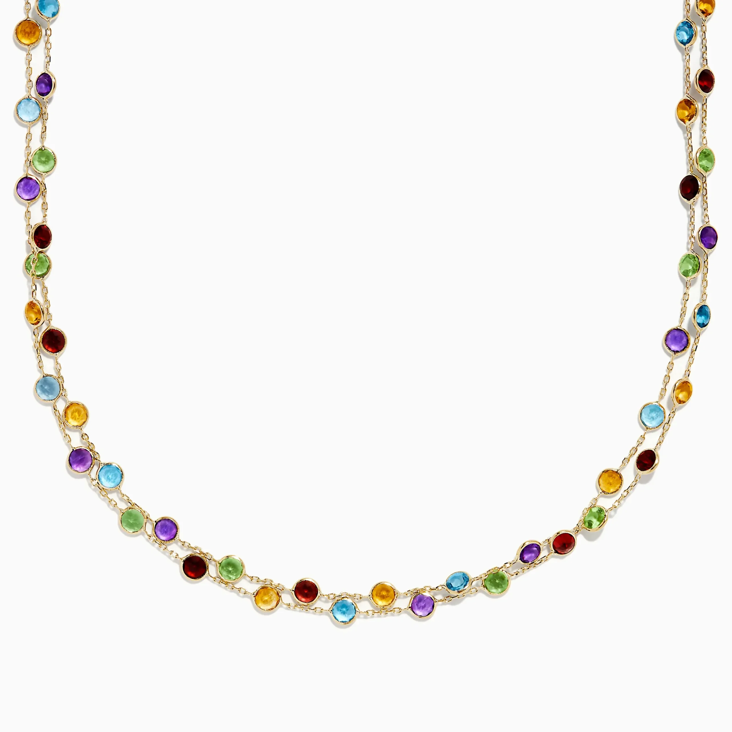Metal:14K Gold Metal Color:YellowStone: Round Multi Color 21.2Mosaic 14K Yellow Gold Multi Color Gemstone and Diamond Ne…