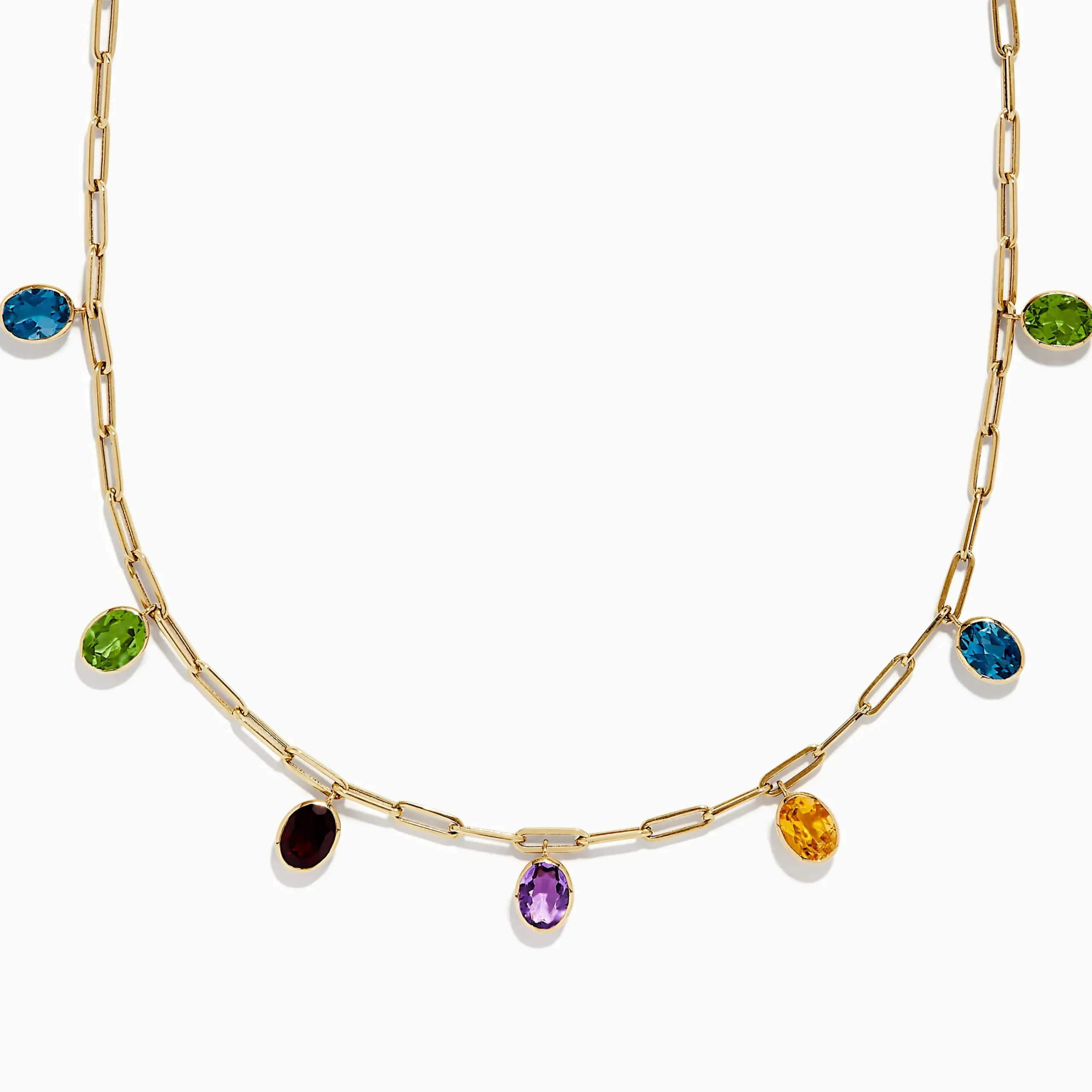 Metal:14K Gold Metal Color:YellowStone: Oval Multi Color 8.91Effy Mosaic 14K Yellow Gold Multi Gemstone Charm Necklace