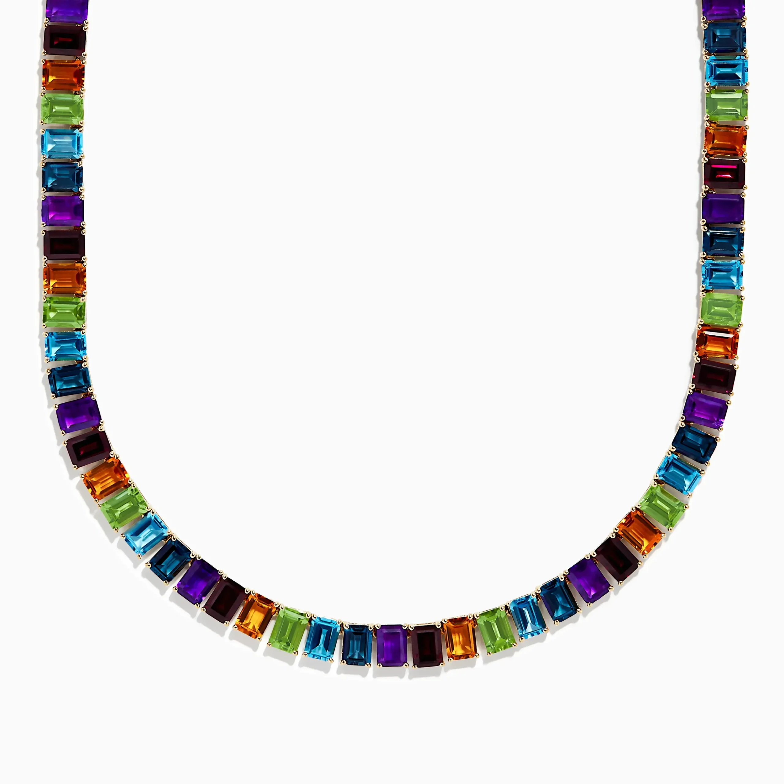 Metal:14K Gold Metal Color:YellowStone: Emerald Cut Multi Color 57Mosaic 14K Yellow Gold Multi Gemstone Necklace