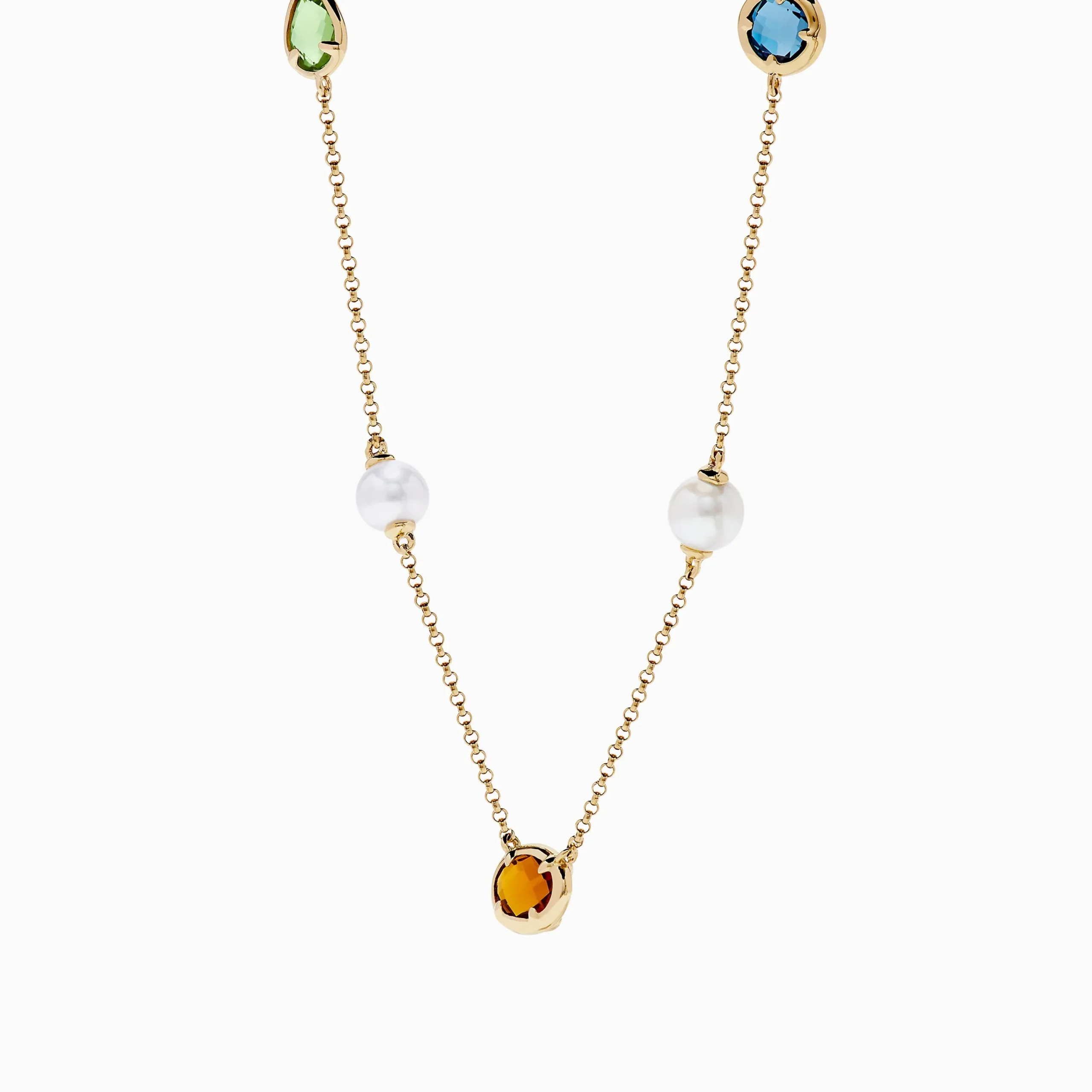 Mosaic 14K Yellow Multi Color Gemstone and Fresh Water Pearl Station Necklace