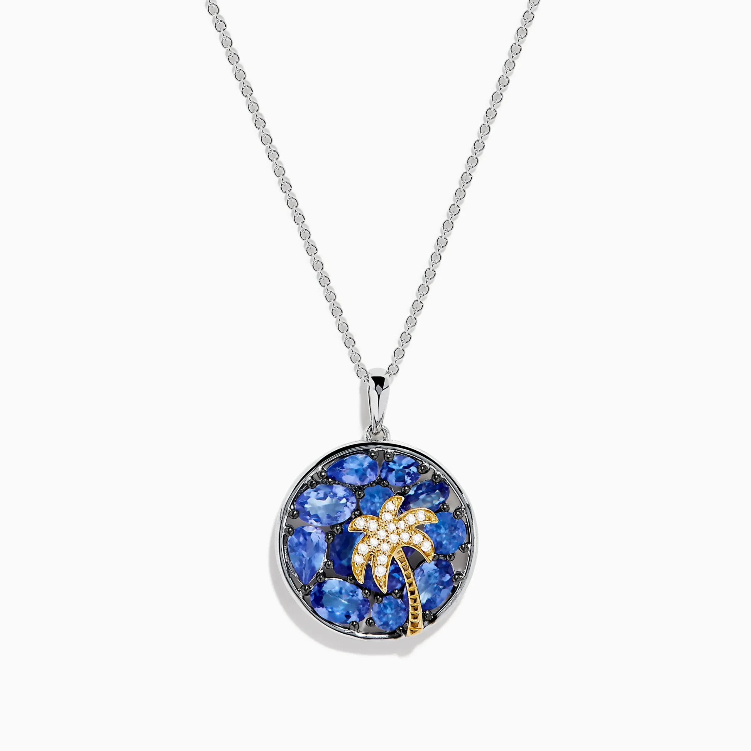 Nahla 925 Sterling Silver and 14K Yellow Gold Tanzanite & Diamond Palm Tree Pendant